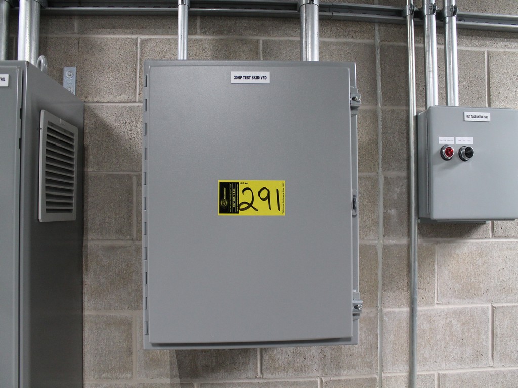 Consisting of but not limited to: Test Electrical Receptacles on Panel, Appleton FSQC61040 Pin and Sleeve Receptacle; Appleton FSQC3430 Pin and Sleeve Receptacle; Appleton FSQC5640 Pin and Sleeve Receptacle; (2) Dial Variable Speed Controllers; Mounted on 32" x 32-1/2" Welded Steel Panel; VFD Box in Electrical Room.