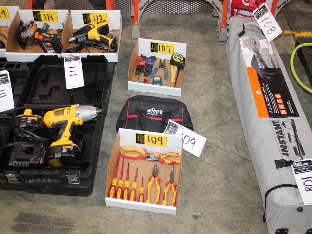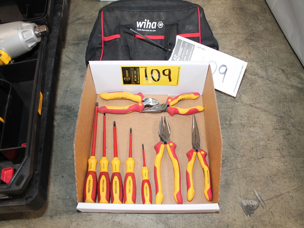 Consisting of but not limited to: Wiha Tool Bag with Miscellaneous Electricians Tools - Screwdrivers, Wire Stripper, Wire Cutter, Pliers, Allen Wrenches, 25' Tape Measure, Tape, etc.