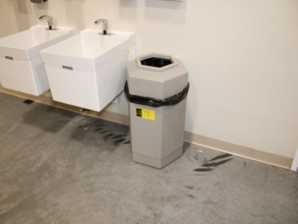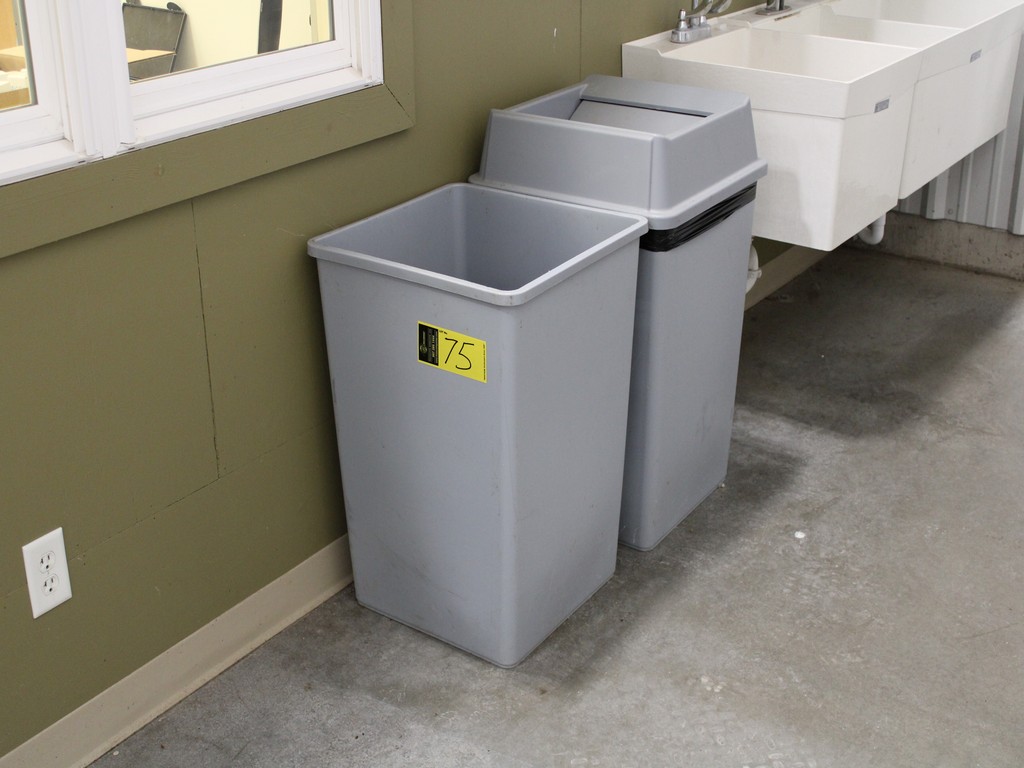 (6) COMMERCIAL ZONE PRODUCTS Trash Cans, PolyTec, 20"W x 17?"D x 29"H, 30-Gallon Capacity; (2) 35-Gallon Trash Cans, Plastic, (1) Double Swing Lid.
