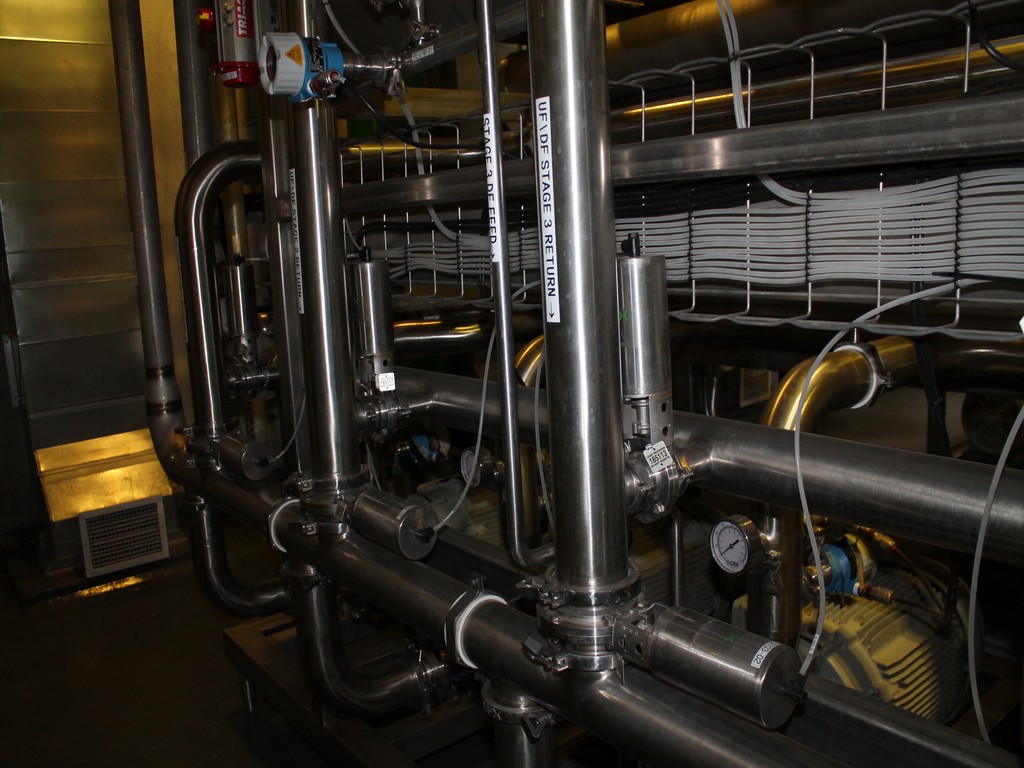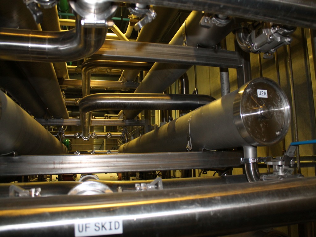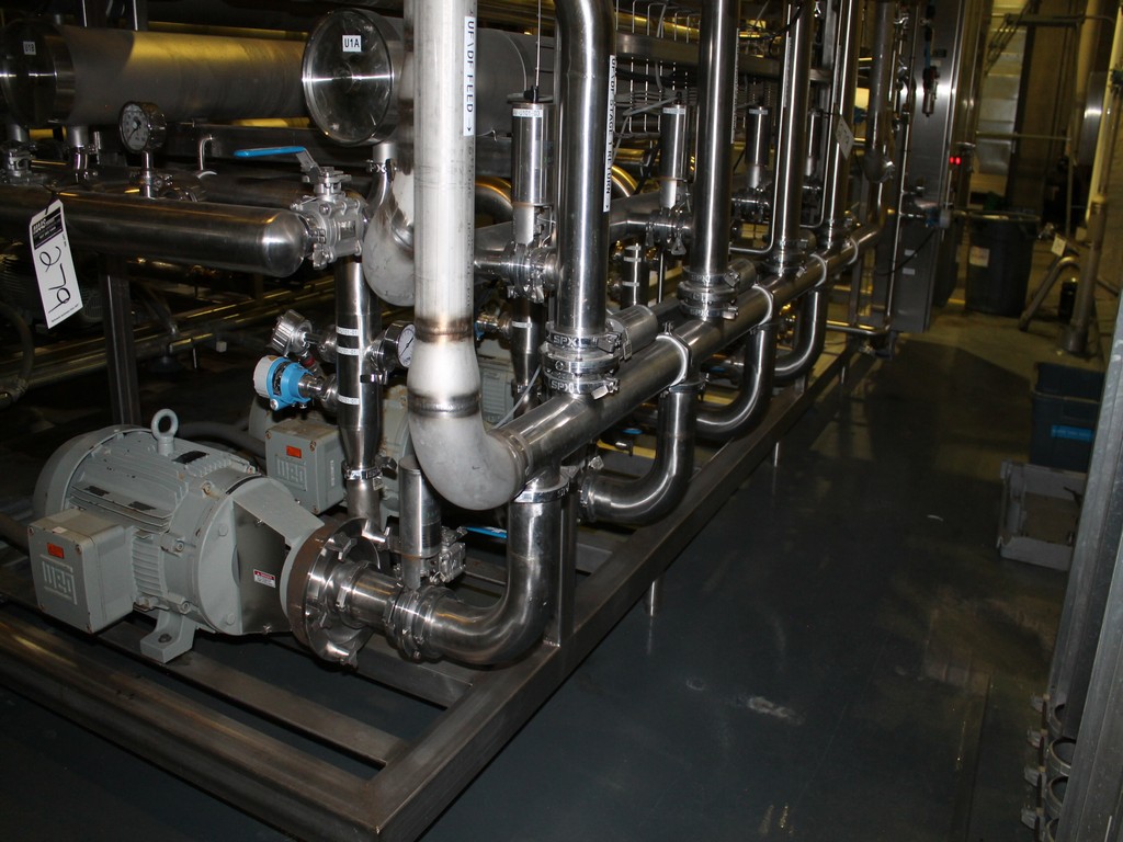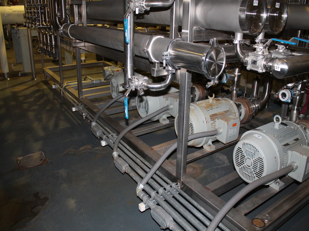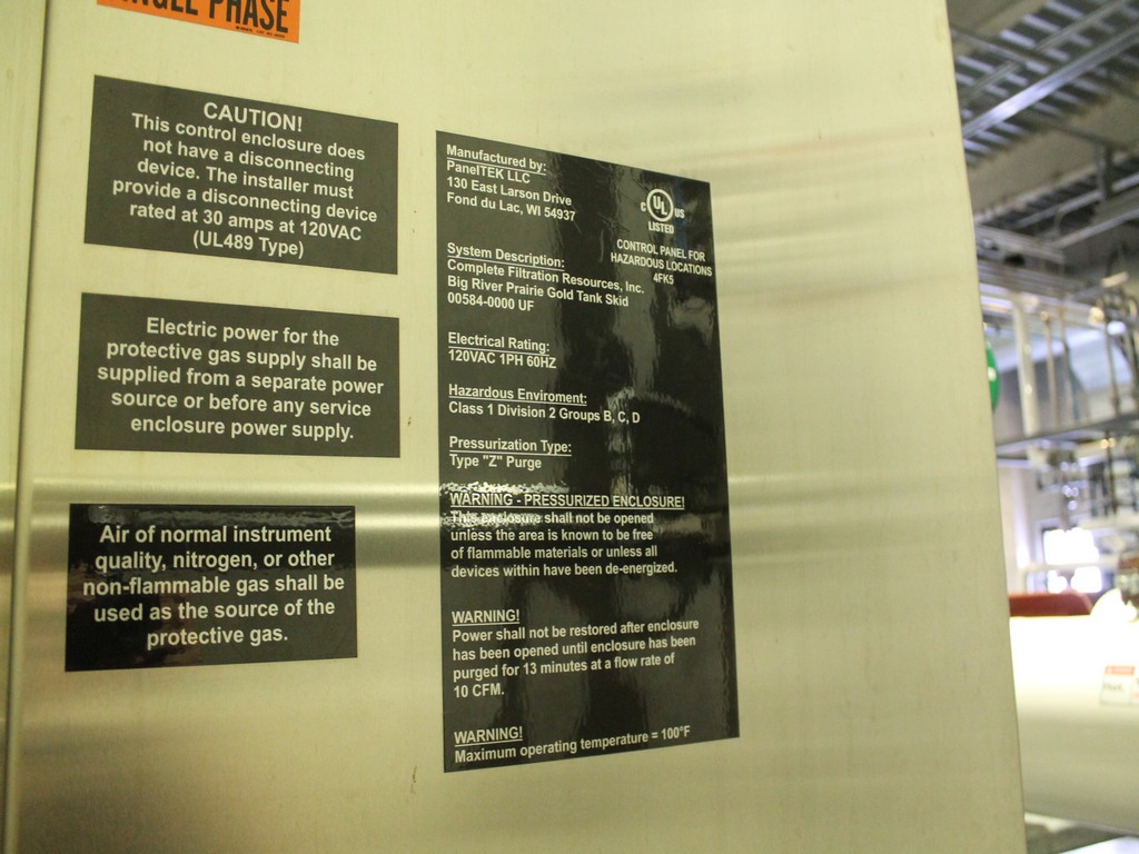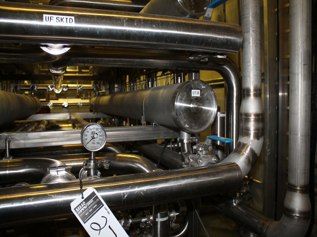Consisting of but not limited to: Approximately 8' x 20' Skid Footprint; Stainless Control Panel; Various Stainless Filters, 8" Diameter x Approximately 22'L, (3) UF Stage 1, (3) UF Stage 2, (3) UF Stage 3; (4) Fristam FPHP3542 Recirculation Pumps, Stainless; (1) Fristam FPX722 Concentrate Pump, Weg 5-HP Electric Motor; Adalet XJN12GCH NF Housing with Turbidity Monitor; (6) Explosive Atmosphere Monitors; ABB Transmitters; Triac Valve Controllers; etc.
