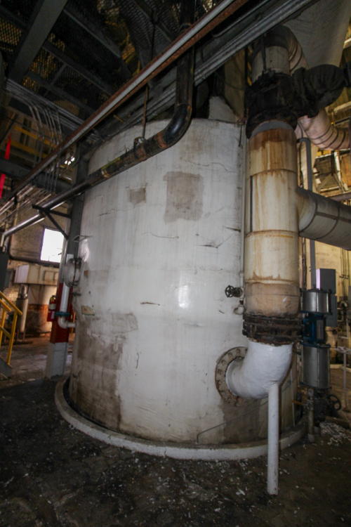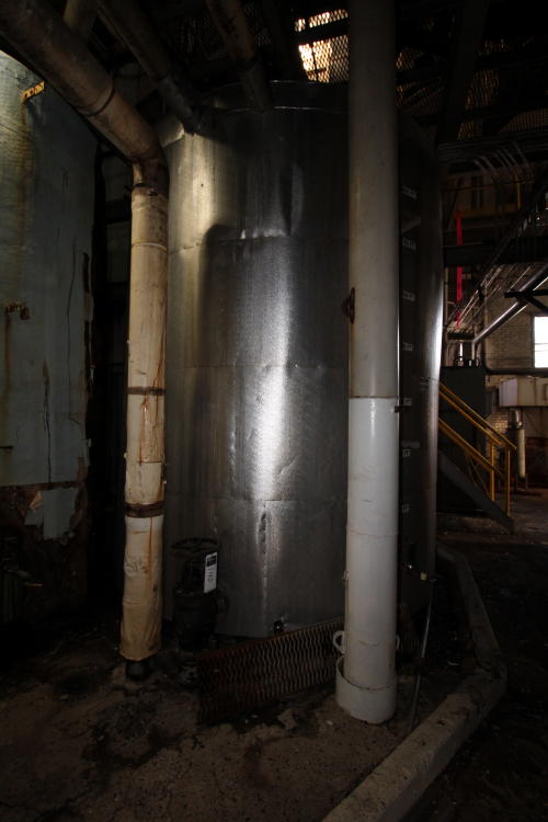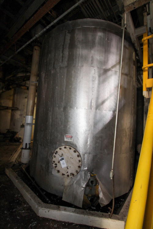 Mild Steel Tank, Estimated 10' Diameter x 12'H, Blanketed, Holds 800 to 1000-Cubic Feet, Vertical, Man Port, Outlets