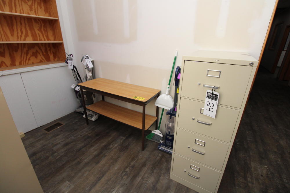 CONSISTING OF BUT NOT LIMITED TO: (4) Metal 4-Drawer Filing Cabinets; 3'W x 18"D x 7'T Metal Shelving Unit with Copy Paper; (2) Plastic Filing Cabinets; (3) Vacuums