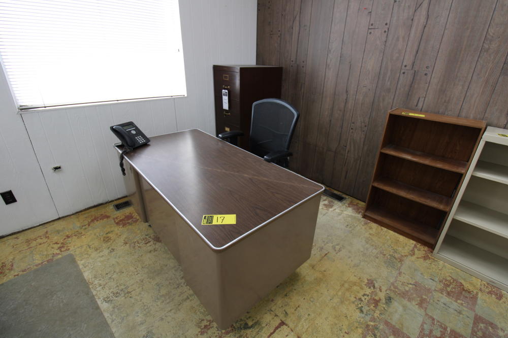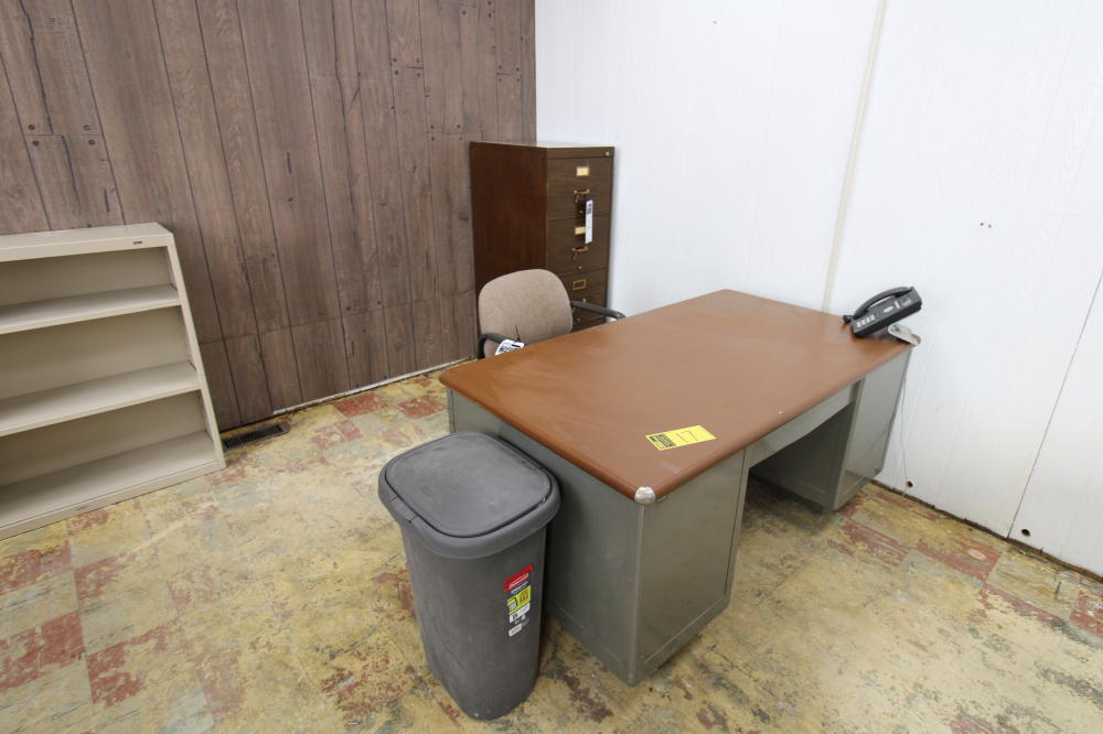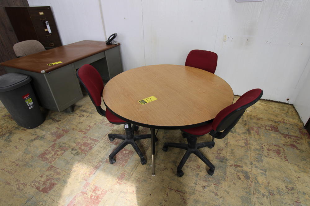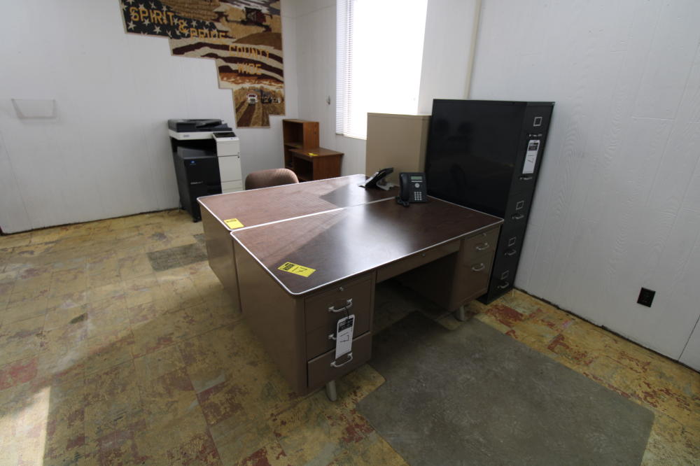 CONSISTING OF BUT NOT LIMITED TO: (3) 30" x 60" Metal Desks with Drawers; 33" x 59" Metal Desk with Drawers; 47.5" Diameter Wood Grain Laminate Top Table; (3) Padded 5-Roller Base Office Chairs; (2) Padded 5-Roller Base Office Chairs, Arm Rests; 5-Roller Base Office Chair with Mesh Back, Arm Rests; (4) Metal 4-Drawer Filing Cabinets; Metal Bookcase with (3) Shelves; (2) Wood Bookcases with (3) Shelves; Wooden 2-Drawer Mobile Cart; Konica Minolta Bizhub C284 A3 Color Laser Multifunction Printer; (4) Avaya 9508 Handsets