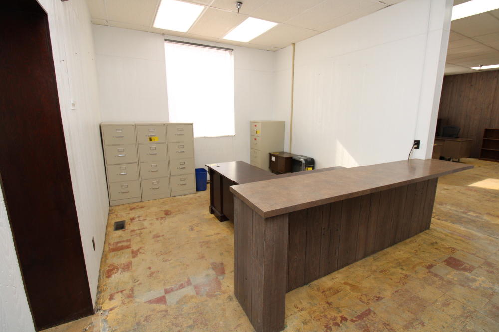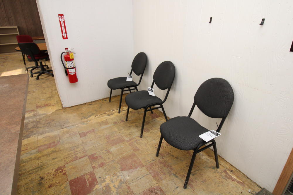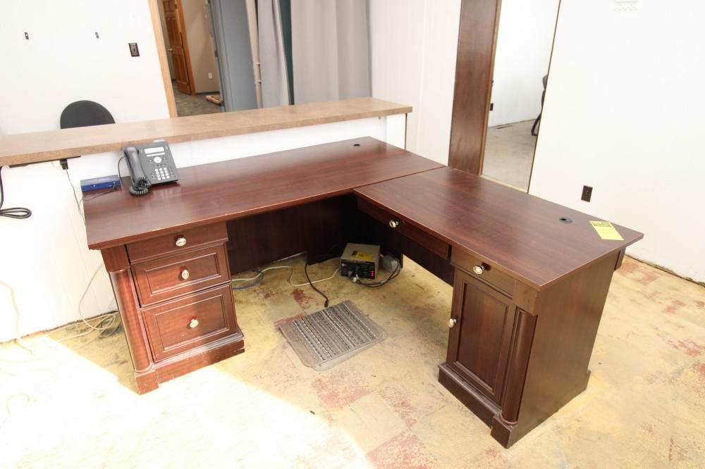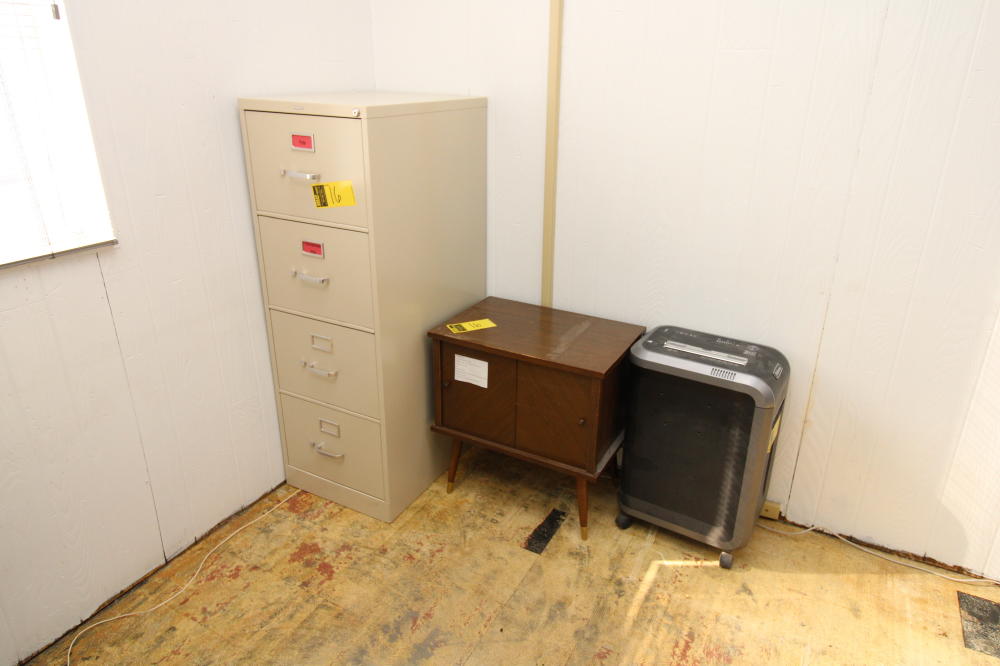 CONSISTING OF BUT NOT LIMITED TO: 69" x 65" L-Shaped Wood Desk; (3) Padded Sided Chairs, 4-legs; (4) Metal 4-Drawer Filing Cabinets; 16" x 24" Wood Printer Cabinet with (2) Doors; Fellows 99ci Shredder; Avaya 9508 Handset
