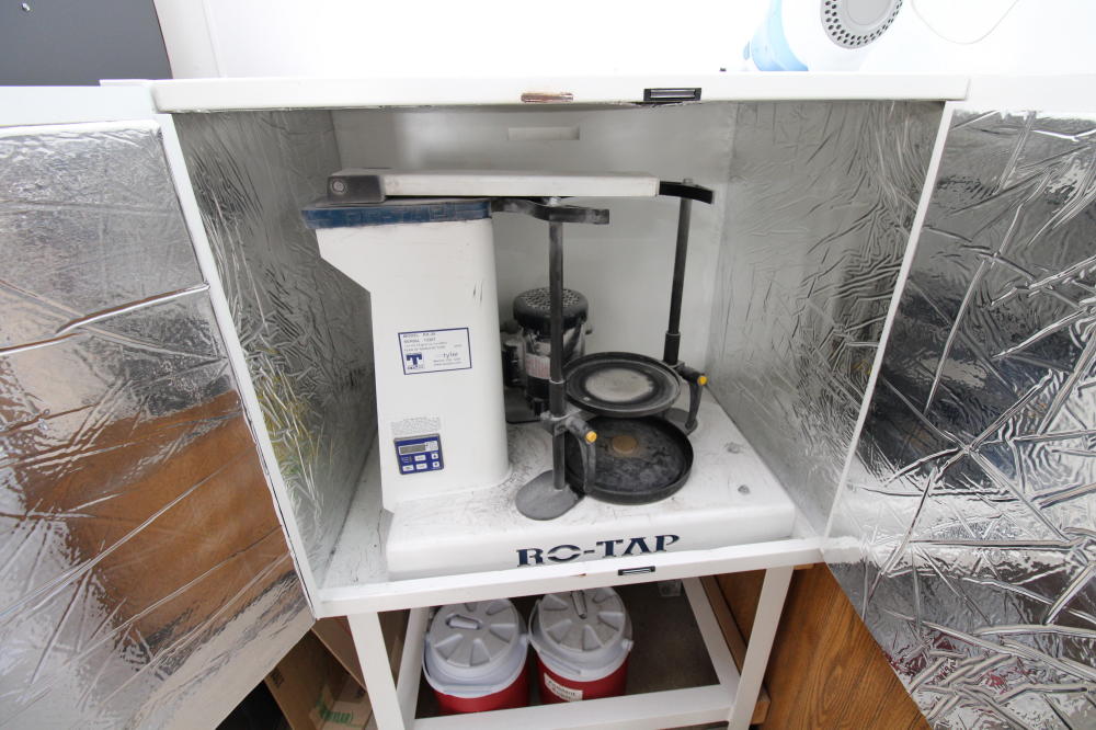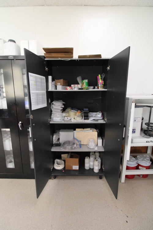 CONSISTING OF BUT NOT LIMITED TO: Built-In Lab Table with (4) Sinks, Backsplash; 36.5"W x 25"D x 84" Metal Shelving Unit, (5) Shelves; Metal 2-Door Cabinet, 36" x 78"T; 6'T Metal 2-Door Cabinet, on Feet; 35"W x 28"T x 24"D 2-Door Cabinet on Stand; (12) Plastic 3-Drawer Carts; 4'T Step Ladder; 3-Step Metal Stock Ladder; Haven & Boecker Tyler RX-29 Sound Enclosure Cabinet, SN: 13267; R-30050 "Ro-Tap" Motorized Sieve Shaker; (2) Bloomfield Instant Hot Water Dispenser; Barnstead/Thermolyne EasyPure RF Compact Ultra Pure Water System, SN: 703940785229; Solinst Peristaltic Pump; VWR Symphony Ultrasonic Cleaner, SN211E7323; Digital Ultrasonic Cleaner "Digital Pro" Cleaner; (2) Sartorius Mark 3 Moisture Analyzers; (4) Sartorius LMA100PQ-000-U Heating Modules, SN1: 33250264, SN2: 27453159, SN3: 27453190, SN4: 27453221; Omnimark Standard Moisture Analyzer; Orion 162A Conductivity Meter; Thermo Scientific Genesys 204001/4 Spectrophotometer, SN: 3SGT204004; Hach DR3900 Spectrophotometer, SN: 2035099; Hach DRB200 Digital Reactor Block, SN: 18010C0227, (21) Positions; Myron L Company Ultrameter II Conductivity Meter; Waring Commercial Double Timer; Oster Blender; Thermo Scientific Orion Star A211 pH Meter; Mettler Toledo PG6002-S Delta Range Scale; AND EK-3000i Scale; AND HR-120 Enclosed Scale, SN: 12321859; Sartorius Entris Scale; Ohaus Frontier FC5706 Centrifuge; VWR 200 Mini Stirrer; (2) Thermo Scientific Cimarec Stirrer; Compression Tester, 160-PSI Max; Custom Built Auto Diluter; QCG Systems LLC 4E Grinding Mill, 5" Hopper, Dayton AC Gear Motor; Various Plastic Bottles, Glass Beakers, Graduated Cylinders, Chemicals, etc.; Tripp-Lite SU 1500XLCD; ThinkVision Lenovo 24" Monitor; (2) Samsung 24" Monitors; ---- LAB CHEMICAL STORAGE ROOM ---- Built-In Lab Table, 86" x 54" L-Shaped, (est.) 86" x 54" x 29"D; (2) Just Right Piggyback Cabinets, 12.5-Gallon Capacity, Metal, For Acid/Corrosive Materials; (2) Just Right Piggyback Cabinets, 12.5-Gallon Capacity, Met
