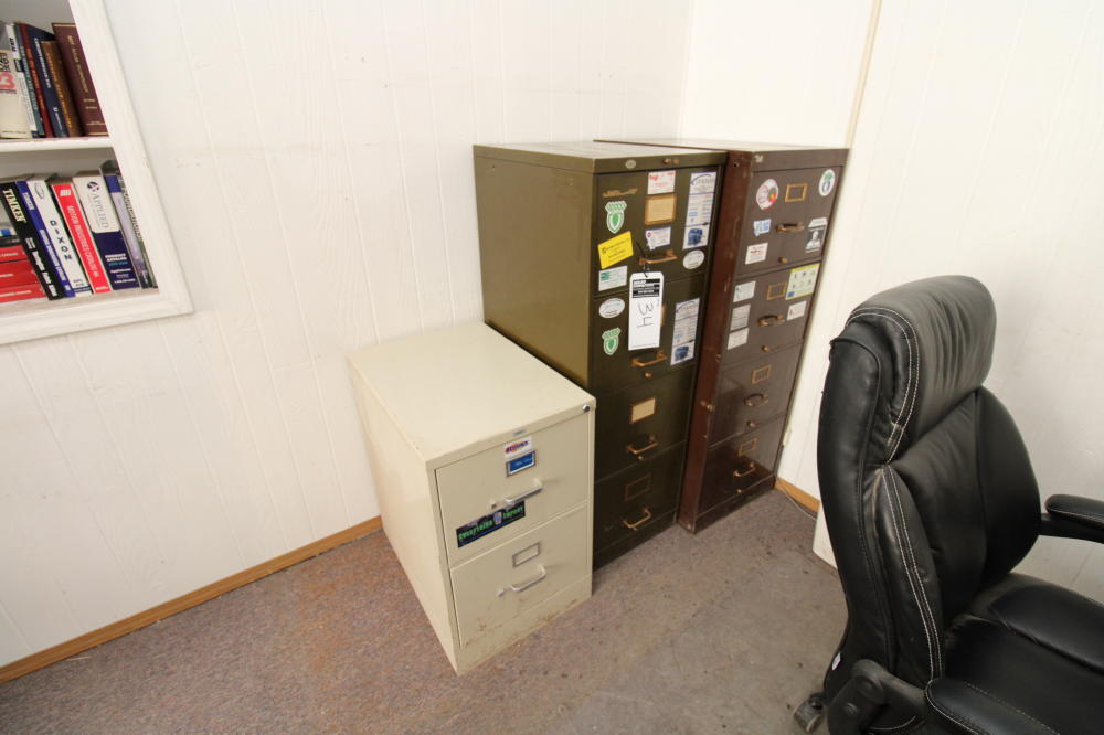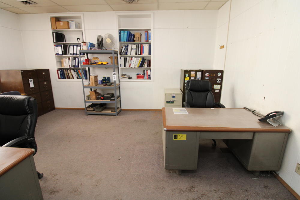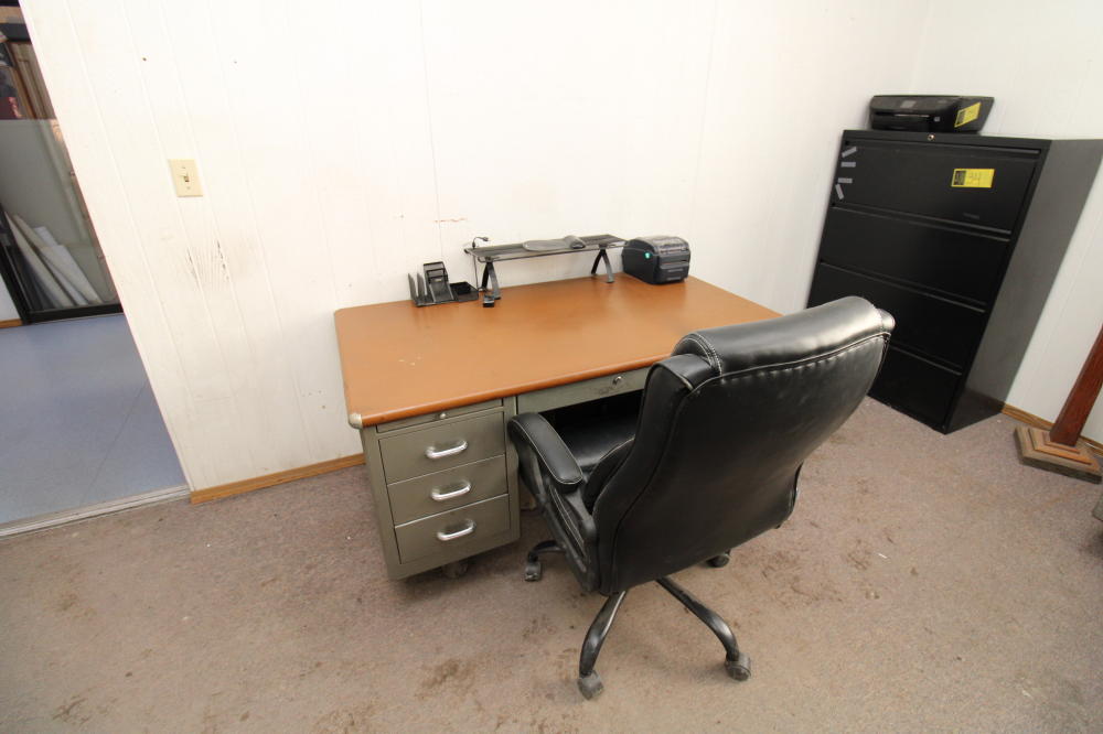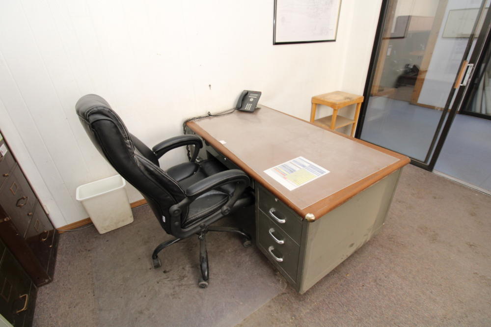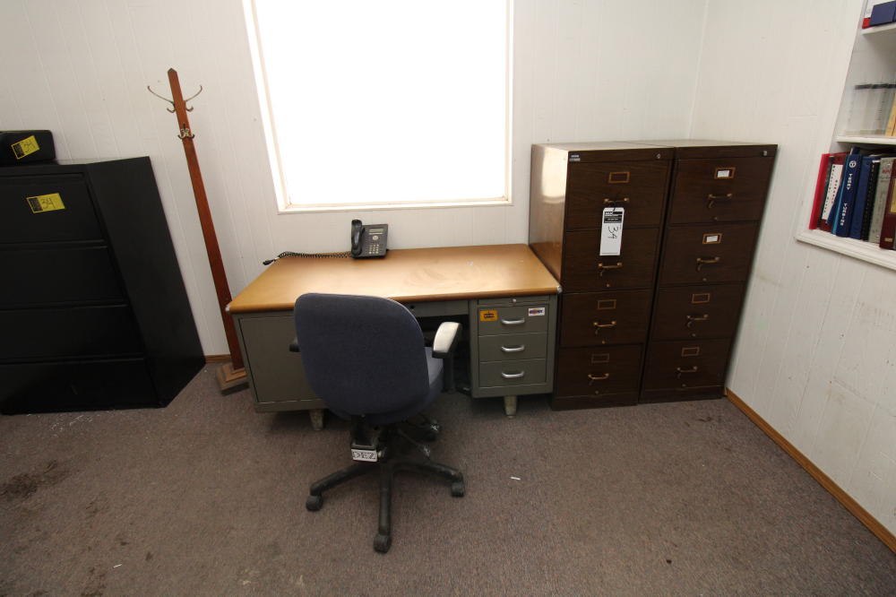 CONSISTING OF BUT NOT LIMITED TO: (3) 33.5" x 59" Metal Desks with Drawers; (4) 4-Drawer Metal Filing Cabinet; 2-Drawer Metal Filing Cabinet; Metal 4-Drawer Lateral Filing Cabinet; Coat Rack; (2) Leather Executive Office Chairs; Metal 5-Shelf Unit and Contents; HP Envy 5660 All In One Printer; (2) Avaya Handsets; Labeltac4 Label Maker