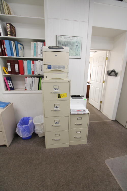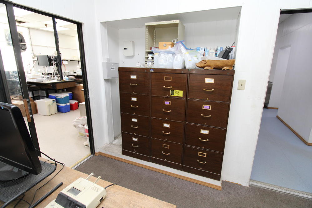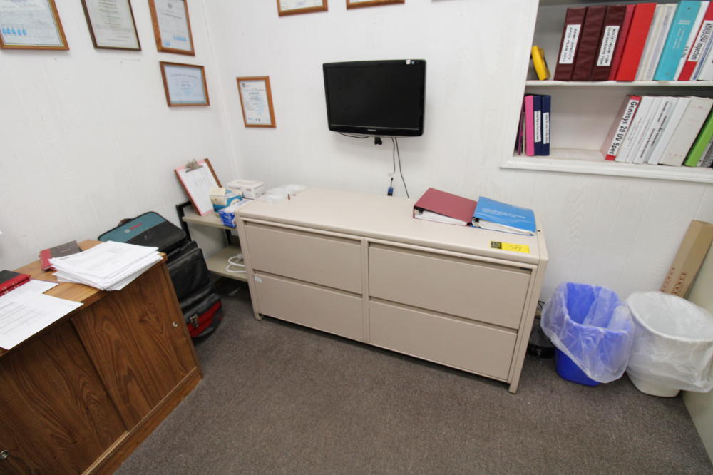 CONSISTING OF BUT NOT LIMITED TO: 36" x 60" Wood Desk with Drawers; 30" x 72" Metal Desk with Drawers; (4) Metal 4-Drawer Filing cabinets; (2) Metal 2-Drawer Filing Cabinets; (2) Metal 4-Drawer Lateral Filing Cabinets; ALL STEEL Metal Cabinet with 18-Drawers and Top Glass Display case; 6'T Wood Grain Laminate 2-Door Cabinet, and Contents; Wood 25"W x 9"D x 36"T Bookcase, 3-Shelves; Wood 200"D x 29"W x 29"T 2-Door Cabinet; Metal 2-Shelf Printer Stand; Samsung 24" Wall Mounted Monitor; (2) Avaya Handsets