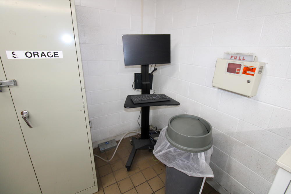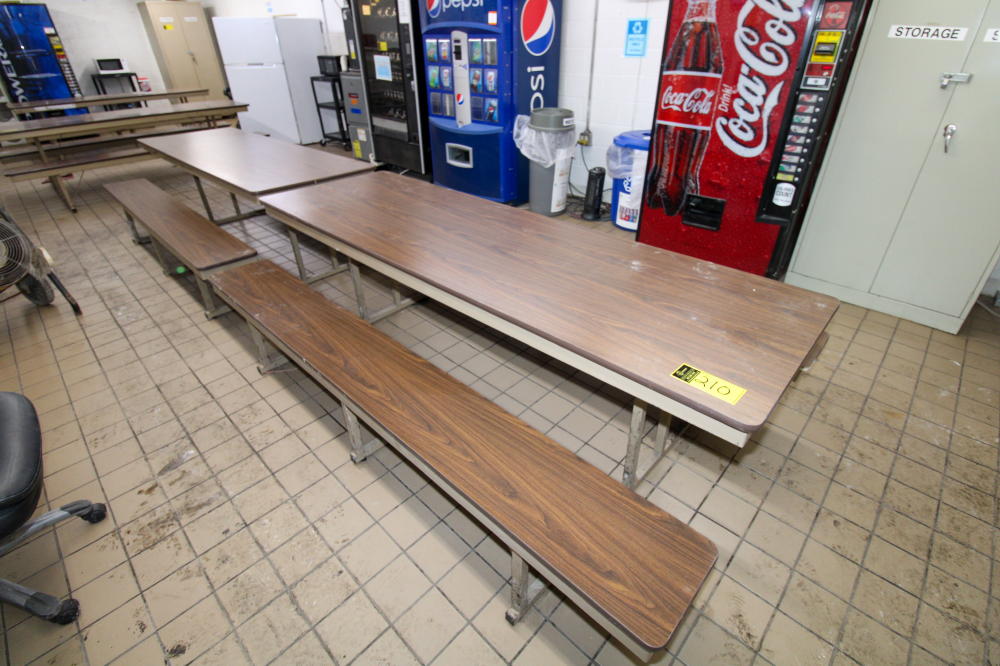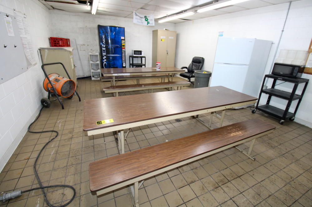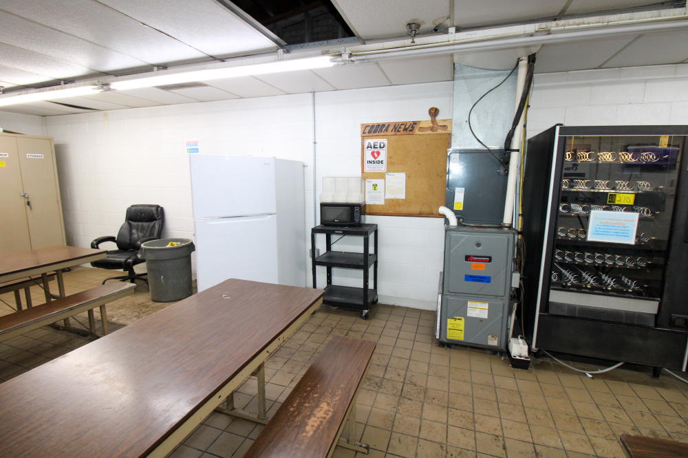 CONSISTING OF BUT NOT LIMITED TO: (4) Wood Laminate 8'L Cafeteria Style Tables with Attached Benches; Metal 2-Door Cabinet, 43"T; (2) 2-Door Metal Cabinets, 6'T; (2) Mobile Carts; Standup Portable Desk Stand with 24" Monitor, Keyboard, Mouse; (2) Leather Executive Office Chairs; 2021 Frigidaire Over/Under Refrigerator/Freezer; Automatic Products Studio 3 Vending Machine, SN: SL304212046, 74-Position, MEI Bill Exchanger, Coin Acceptor; Costway Water Dispenser; (3) Stall Bathroom, (2) Shower Stalls, (24) 1'x6'T Metal Lockers