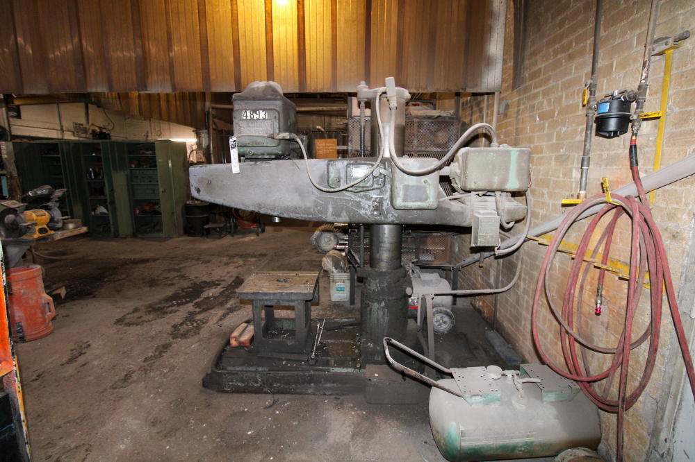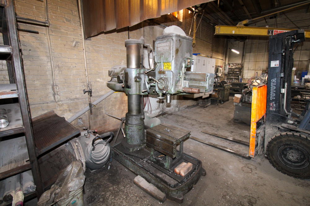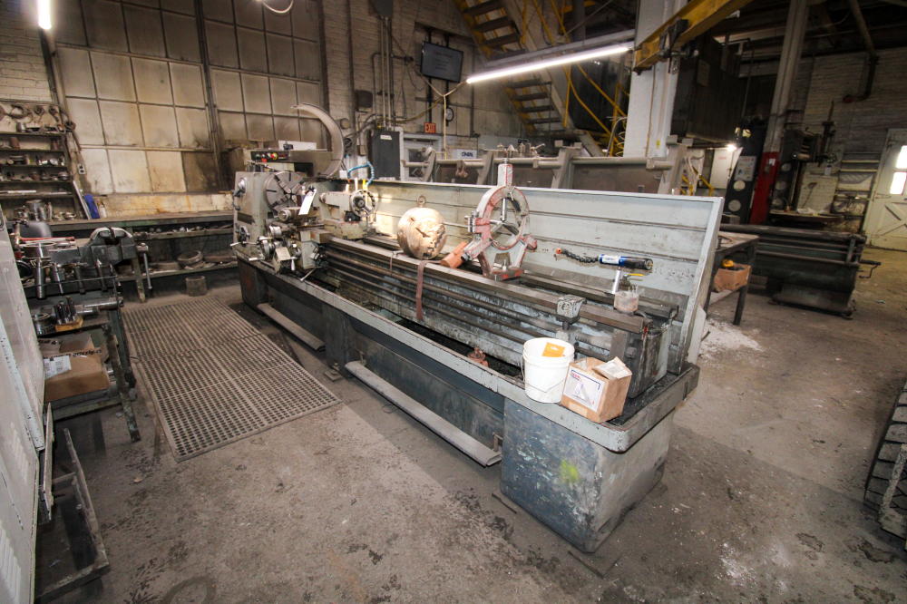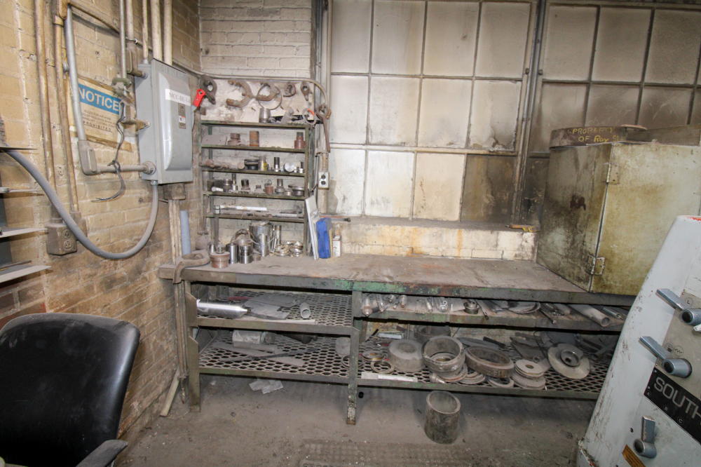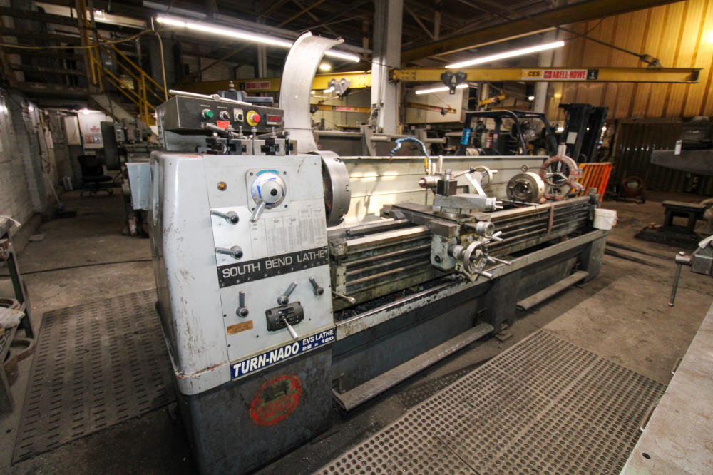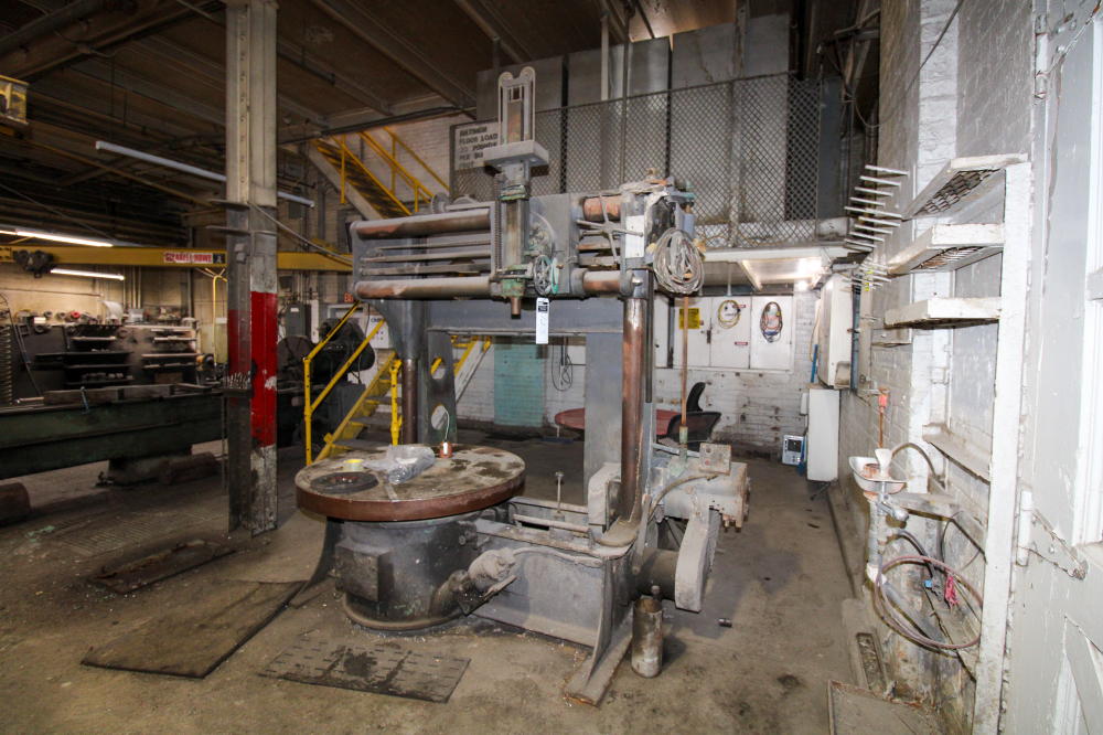 CONSISTING OF BUT NOT LIMITED TO: Assembled Vertical Lathe, 4' Diameter Rotary Table; LeBlond 19" Heavy Duty Engine Lathe, 12' Bed, Tailstock, 4-Jaw Chuck, SN: NE4275; South Bend Lathe Turn-N-Ado EVS Lathe, SN: 169CK, 22" x 120" Bed, 4-Jaw Chuck, Tailstock, Tool Post; Cincinnati Bickford Radial Arm Drill, (est.) 9" Column x 4' Arm, SN: 1R404; (7) 1-Ton Jib Cranes, No Hoists; 1000# Underslung Craneway; 12" Dual End Bench Grinder; (2) DeWalt DW758 Dual End Bench Grinders, 8"; Reco BC Induction Bearing Heater; Reco SC Induction Bearing Heater; Miller Dialarc 250 AC/DC Arc Welding Power Source, SN: KH456784, 1998, Various Spools of Welding Wire, Welding Sticks; Nikro Exhaust; (3) Metal Cabinets, 6'T, 2-Door, Housing Various Tooling; Various Wood Shelves with Parts; Various Work Surfaces; (28) Lockers; Microwave