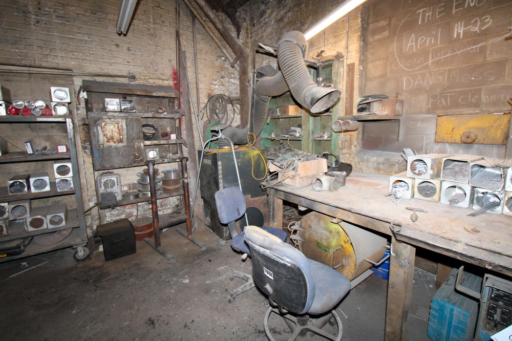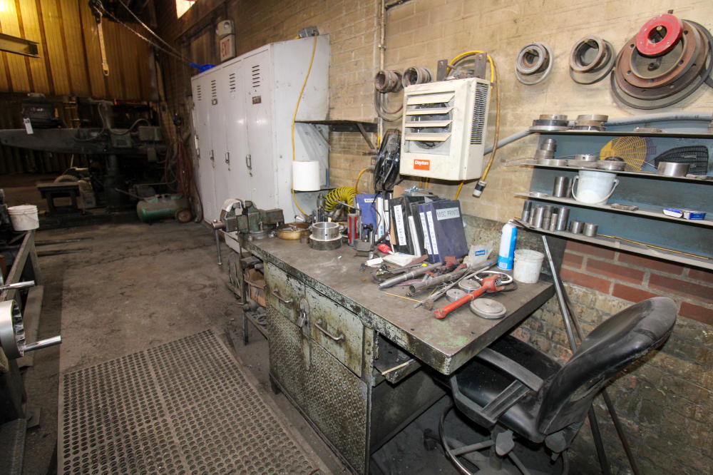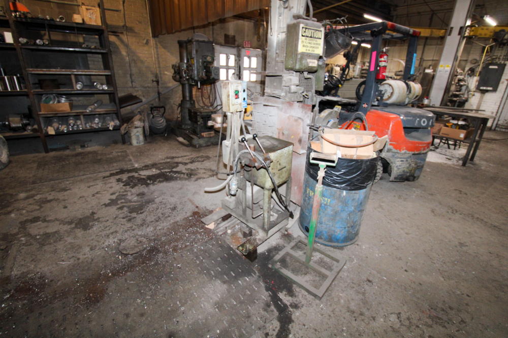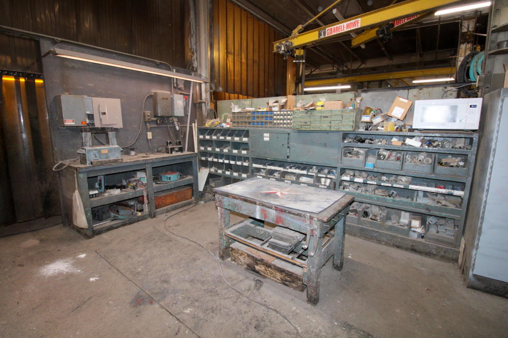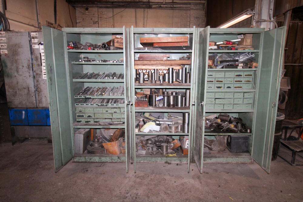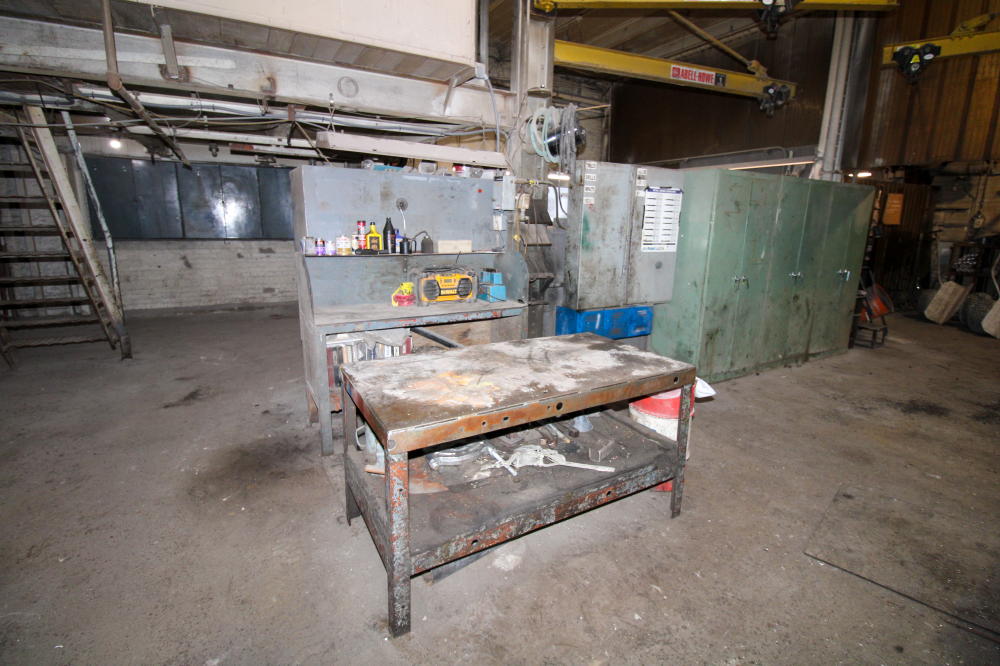 CONSISTING OF BUT NOT LIMITED TO: Assembled Vertical Lathe, 4' Diameter Rotary Table; LeBlond 19" Heavy Duty Engine Lathe, 12' Bed, Tailstock, 4-Jaw Chuck, SN: NE4275; South Bend Lathe Turn-N-Ado EVS Lathe, SN: 169CK, 22" x 120" Bed, 4-Jaw Chuck, Tailstock, Tool Post; Cincinnati Bickford Radial Arm Drill, (est.) 9" Column x 4' Arm, SN: 1R404; (7) 1-Ton Jib Cranes, No Hoists; 1000# Underslung Craneway; 12" Dual End Bench Grinder; (2) DeWalt DW758 Dual End Bench Grinders, 8"; Reco BC Induction Bearing Heater; Reco SC Induction Bearing Heater; Miller Dialarc 250 AC/DC Arc Welding Power Source, SN: KH456784, 1998, Various Spools of Welding Wire, Welding Sticks; Nikro Exhaust; (3) Metal Cabinets, 6'T, 2-Door, Housing Various Tooling; Various Wood Shelves with Parts; Various Work Surfaces; (28) Lockers; Microwave
