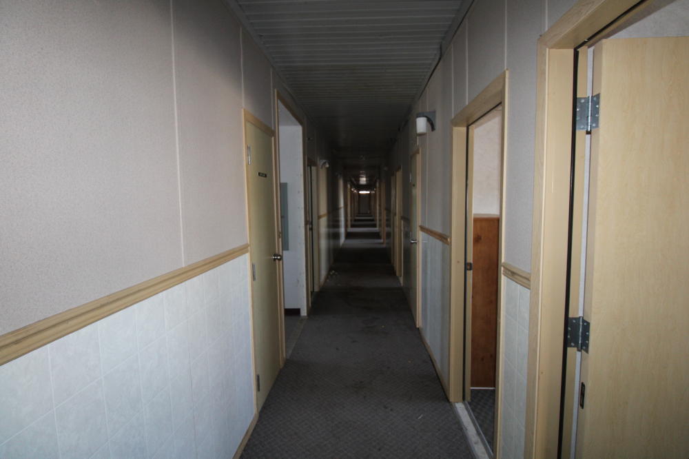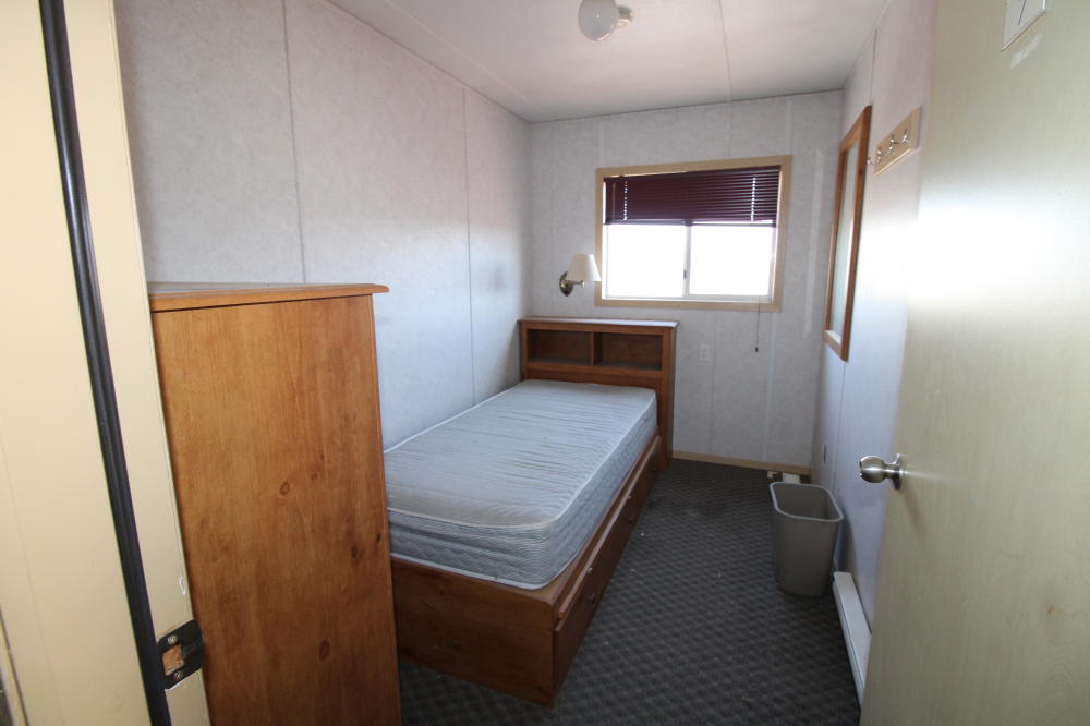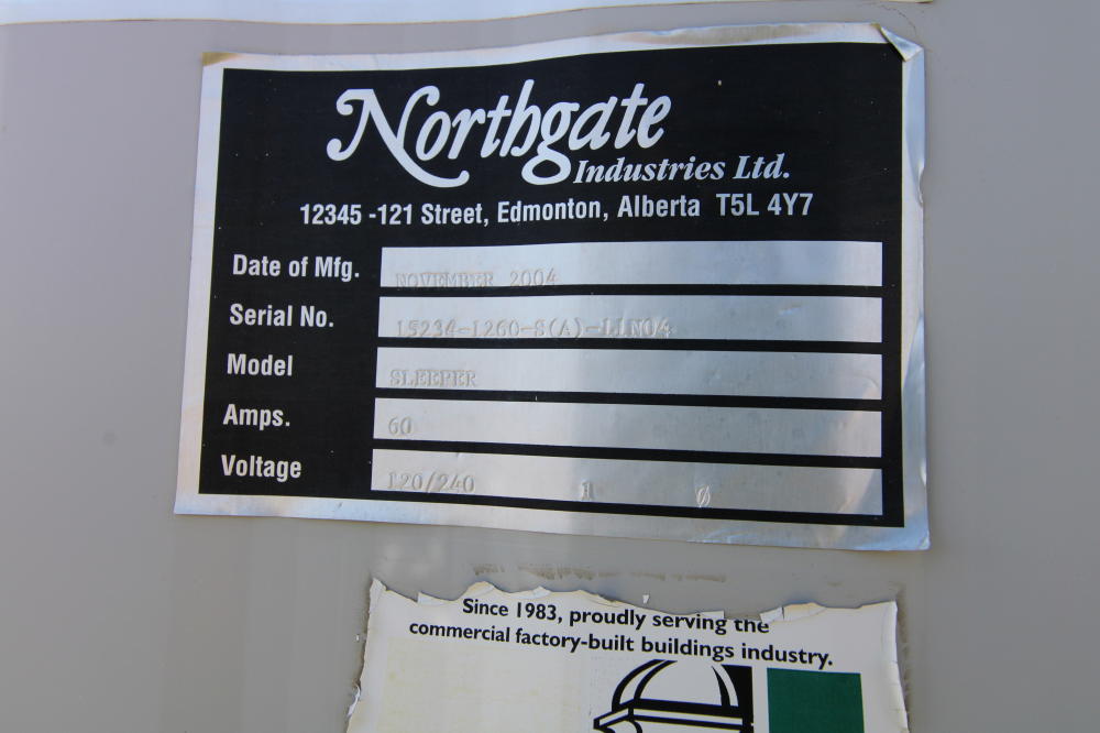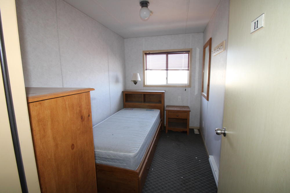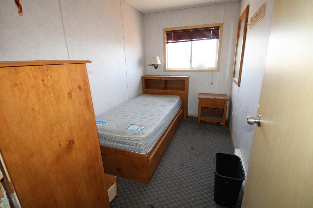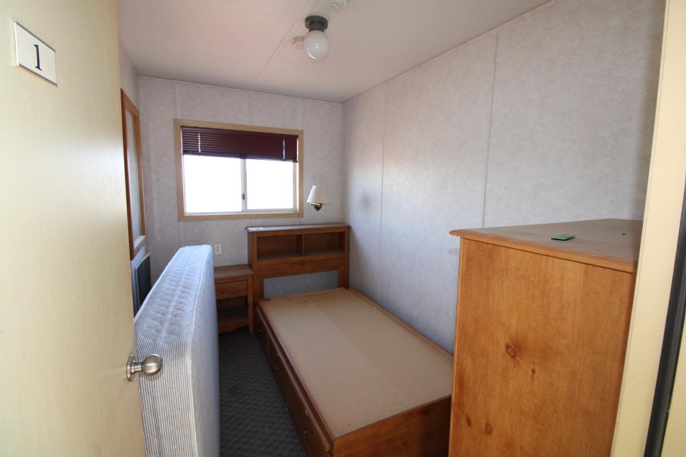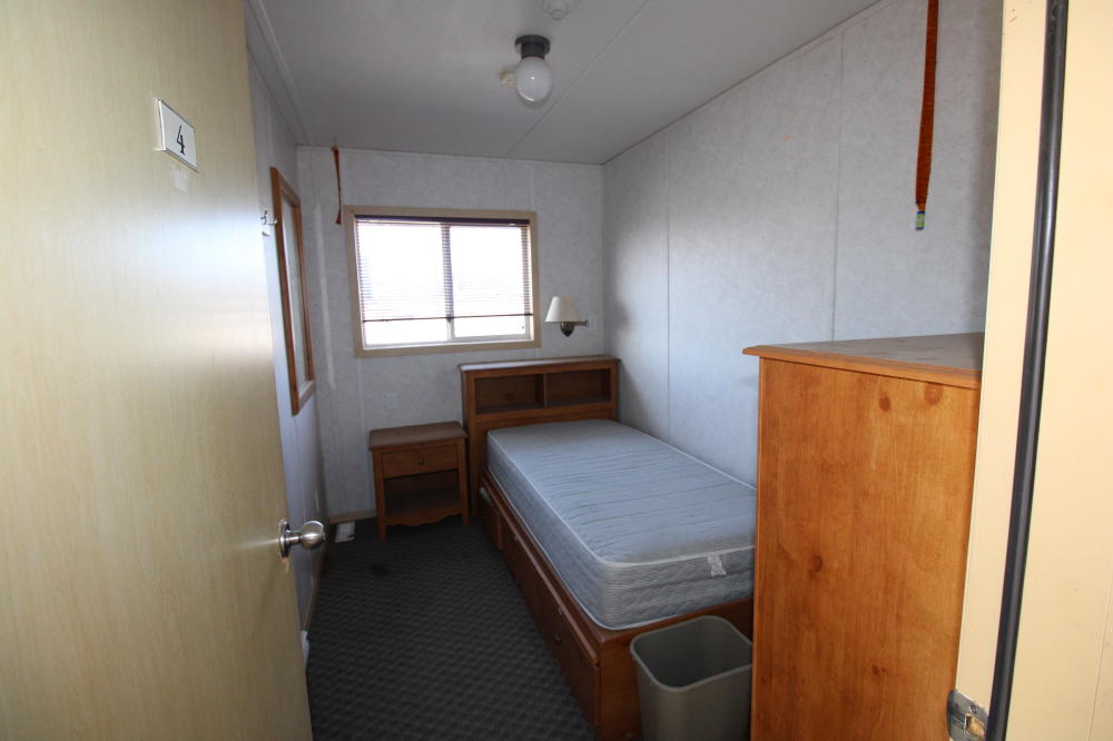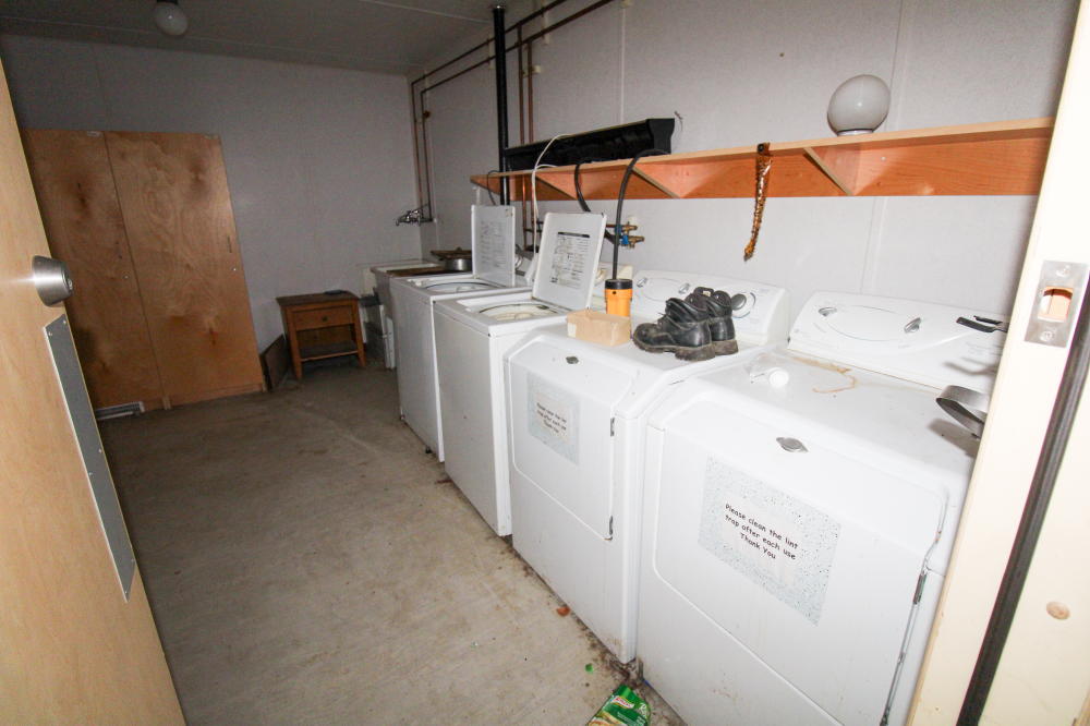2004 Sectional Sleeping Quarters with Washroom and Laundry Room; Quantity of (4) 12'W x 60'L Sleeping Quarters, Each Containing (7) 80.5"W x 11'L rooms, (1) L-Shaped room 7'L x 109"W and 50"L x 70"W. Each Bedroom Contains Electric Baseboard Heat, Twin Bed Frame, Mattress, Dresser, Nightstand, Wall Mirror, (3) Wall Hooks, and Wall Mounted Lamp. (1) 12'W x 64'L Sleeping Quarter Unit, (7) 80.5"W x 11'L rooms, (1) L-Shaped room 7'L x 109"W and 50"L x 70"W. Each Bedroom Contains Electric Baseboard Heat, Twin Bed Frame, Mattress, Dresser, Nightstand, Wall Mirror, (3) Wall Hooks, and Wall Mounted Lamp. (1) 12'W x 64'L Washroom Unit, Women's Restroom with Toilet, Shower, Sink, Mirror, Men's Restroom with (2) Urinals, (3) Showers, (4) Stalls, Sinks, Mirrors; AO BTRC365 Water Heater, SN: H04M0017079, Propane, 65-Gallon Capacity; Laundry Room with (2) Washers, (2) Dryers, 2-Compartment Utility Sink, Mop Sink; (2) 80.5"W x 11'L Bedrooms Containing Electric Baseboard Heat, Twin Bed Frame, Mattress, Dresser, Nightstand, Wall Mirror, (3) Wall Hooks, and Wall Mounted Lamp.