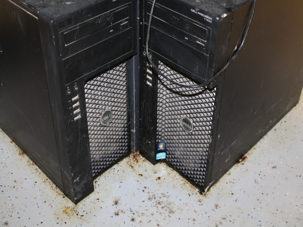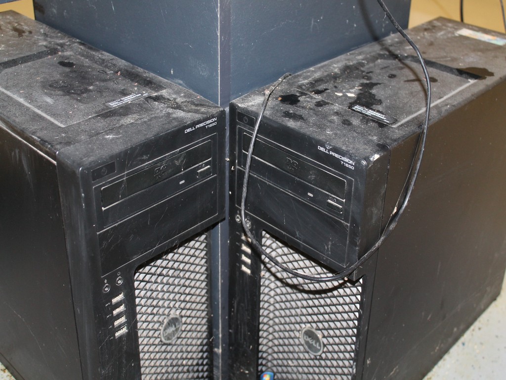 Consisting of but not necessarily limited to: 2-Laminate Top Tables, 24" x 60"; DELL Server Cabinet with ULTRA Power Supply, ACER 22" Flat Screen Monitor; 2-Desk Chairs, Armrests, 5-Roller Bases; L-Shaped Work Station, 24" x 72" x 24", Drawer Pedestal; 2 DELL Precision T1650 Tower PCs with ACER 22" Monitors; SAMSUNG 40" LED 3D Television, Wall Mounted; SHARP Aquos 60" HD Television, Wall Mounted