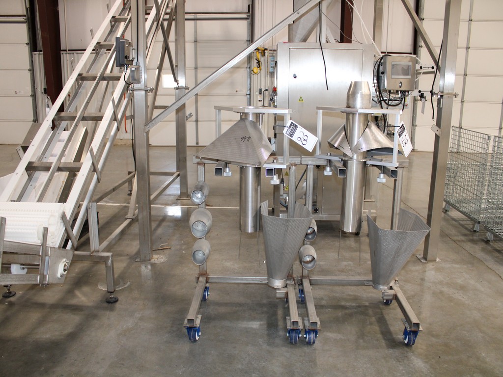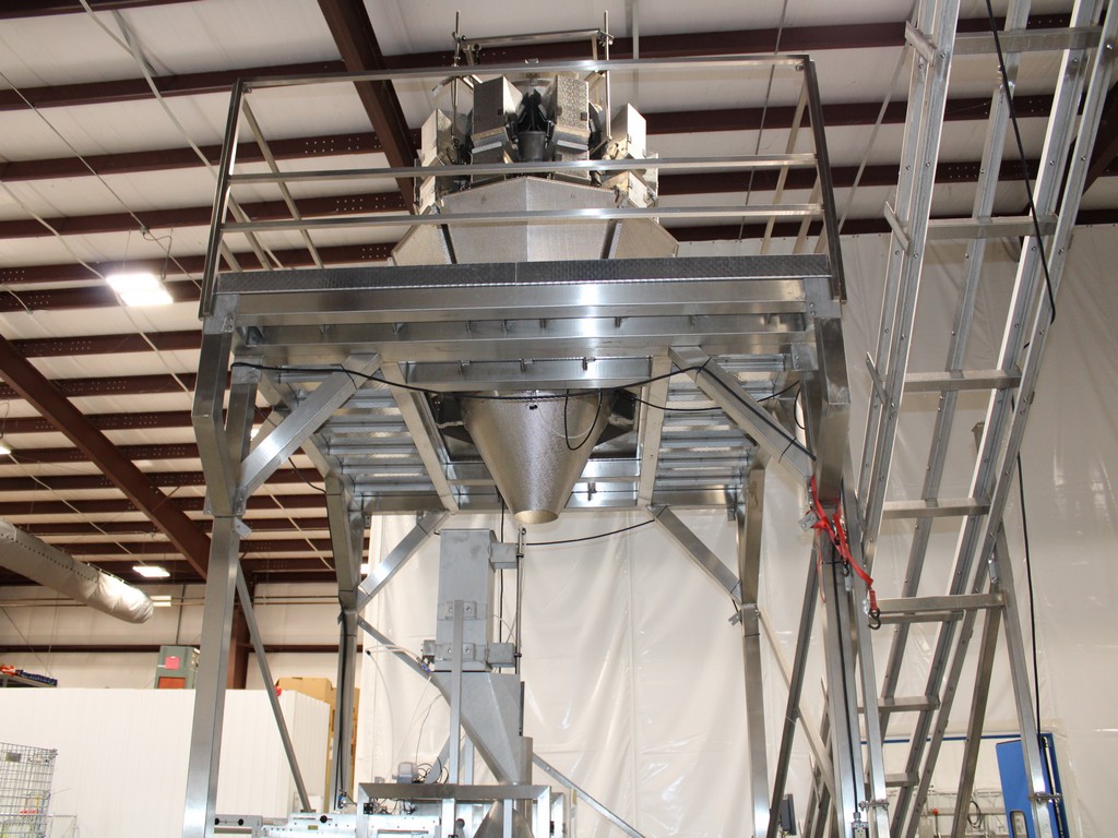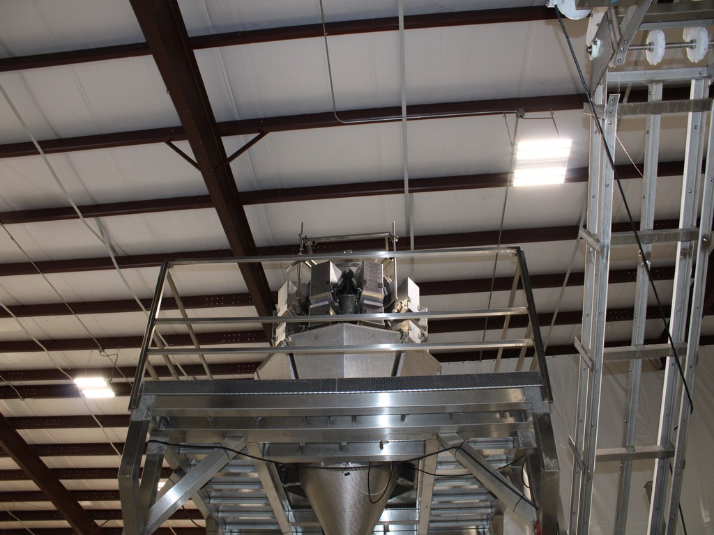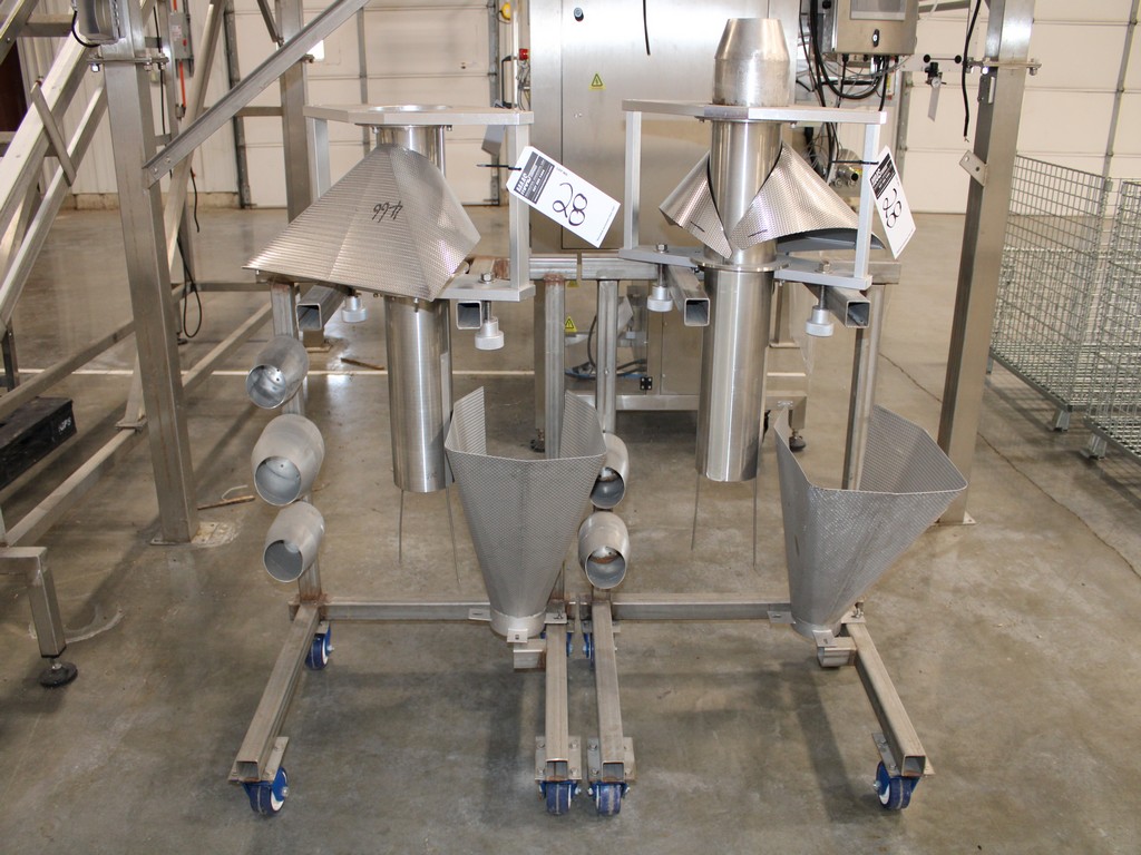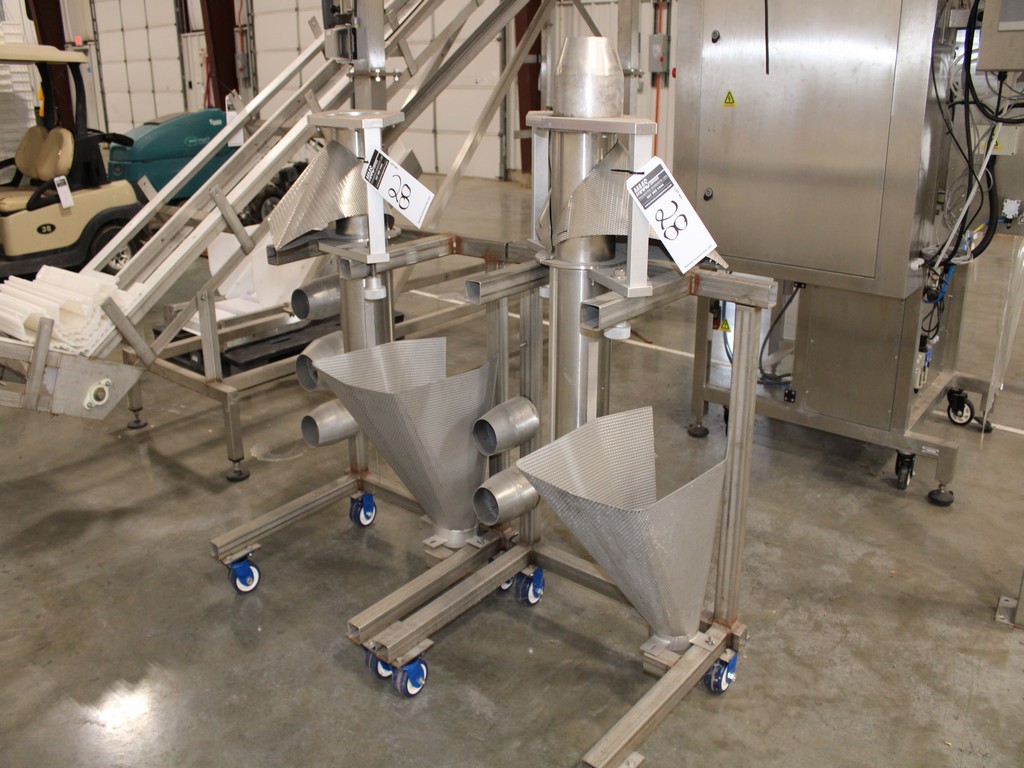 Consisting of but not limited to: OHLSON MHW-CW10 MultiHead Weigher, Infeed Funnel, (10) Feed Buckets/Weigh Buckets, Collating Chute, 80-Bags/Minute; Steel Frame, Approximately 92"W x 112"L x 12'T Platform, Hand Rails on All Sides; OHLSON Model 6312 (VFFX6312SS) Automatic Form Fill & Seal Machine, 25?" Max Film Width, 3?" - 12"W Max Bag Width, 2" - 11" Max Bag Length, WEINVIEW Touchscreen Controls; (2) 4-Wheel Cart with Steel Chute, Various Sized heads Ranging 3" - 5" Diameter; 23"W x Approximately 28'L Inclined Powered Conveyor, Belt Conveyor, Steel Frame; 20"W x Approximately 4'L Inclined Powered Conveyor, 2'L Landing, Plastic Bucket Belt.