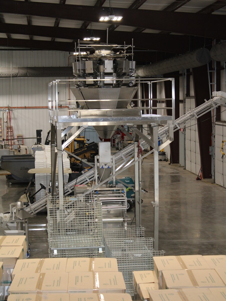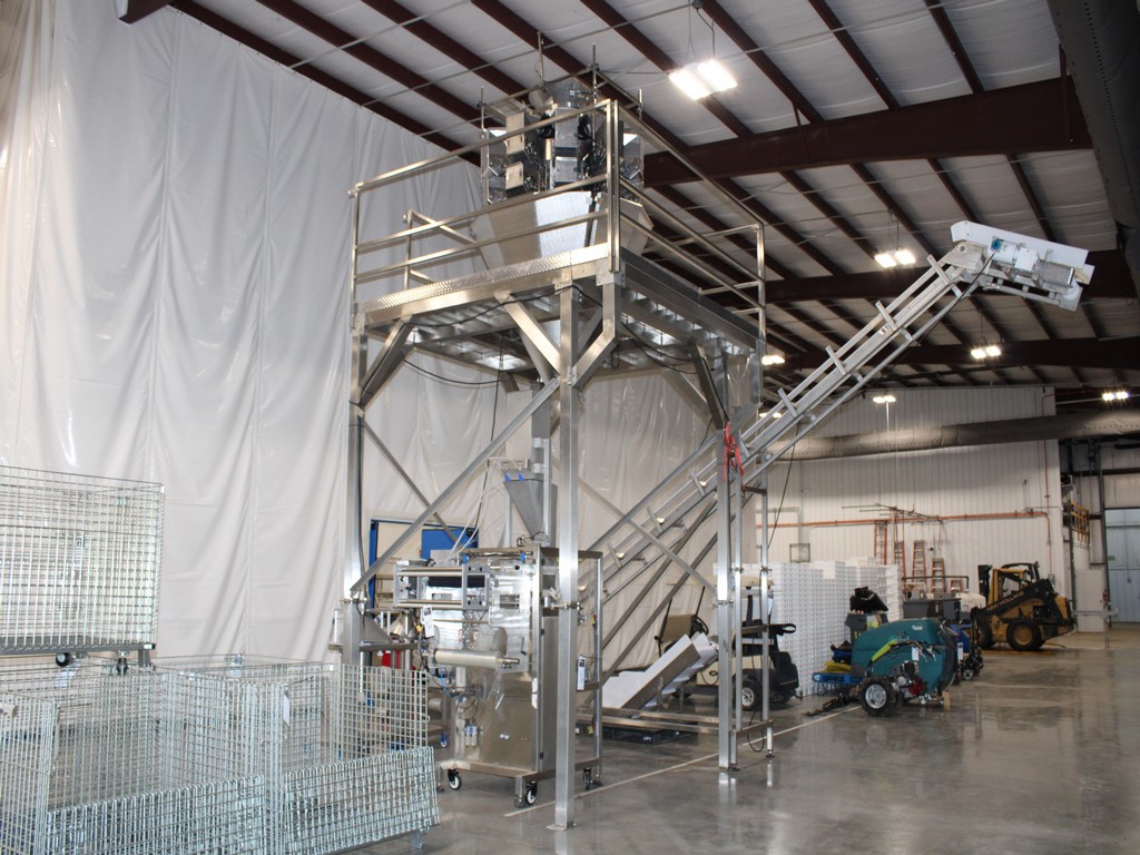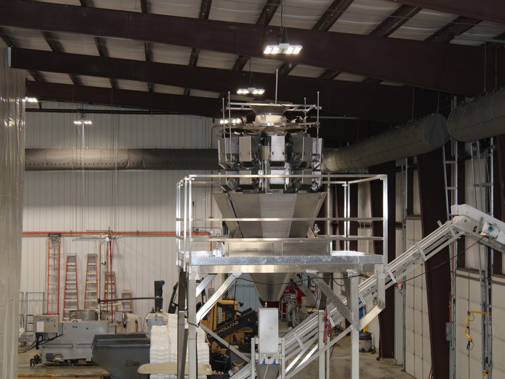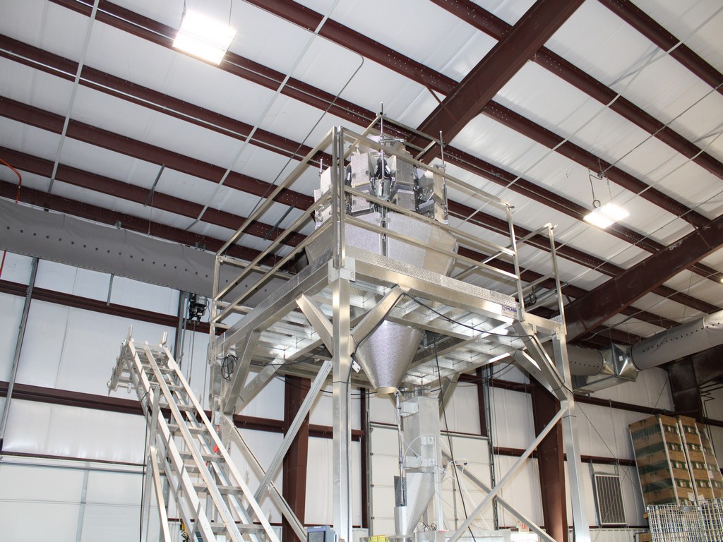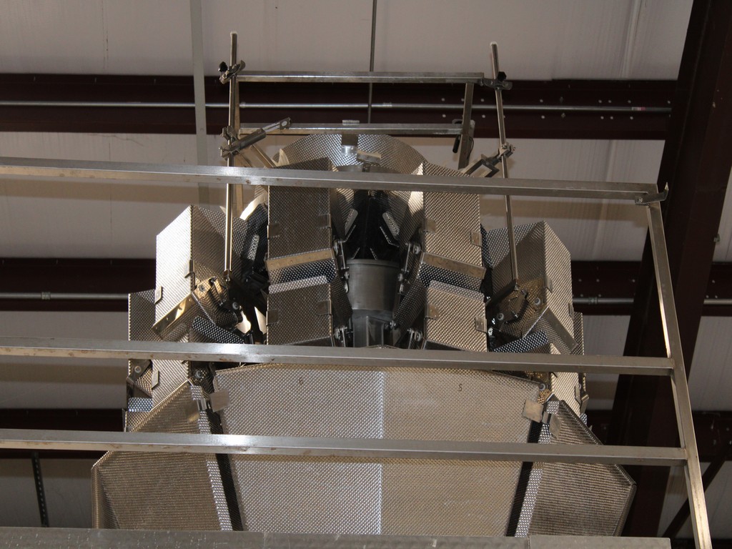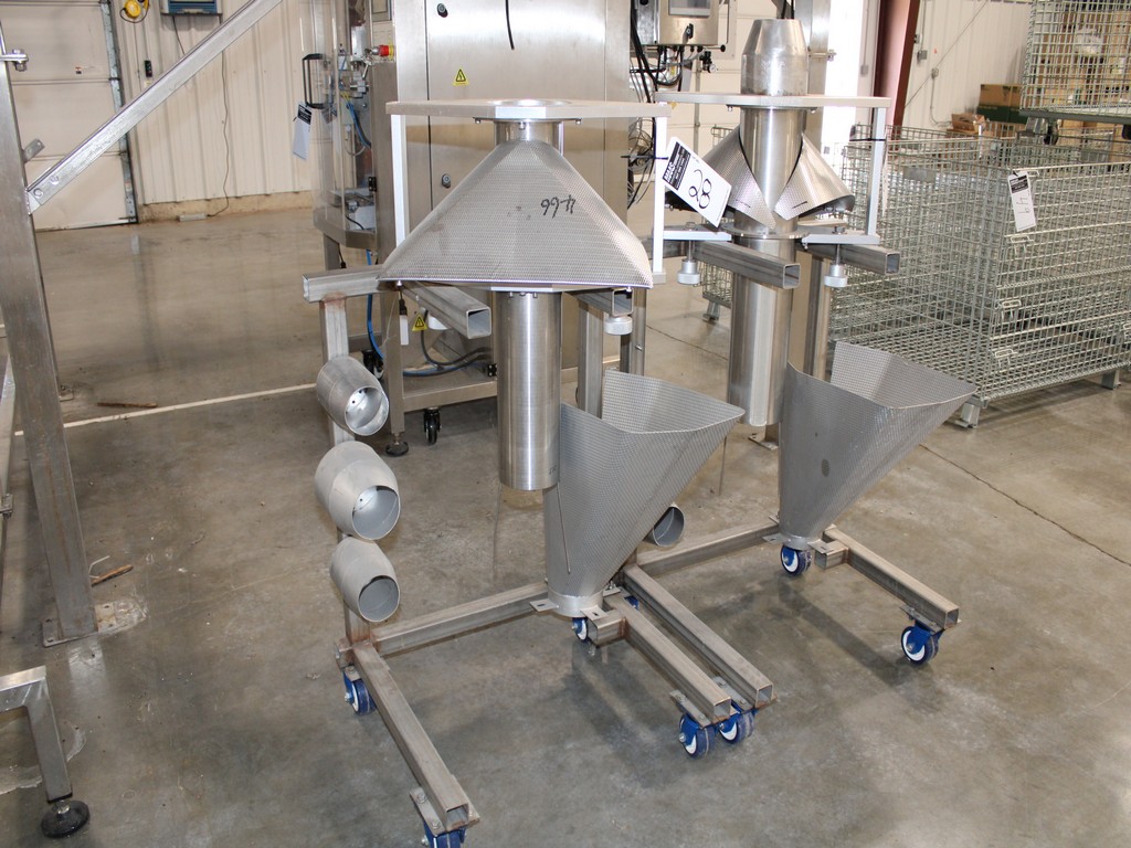 Consisting of but not limited to: OHLSON MHW-CW10 MultiHead Weigher, Infeed Funnel, (10) Feed Buckets/Weigh Buckets, Collating Chute, 80-Bags/Minute; Steel Frame, Approximately 92"W x 112"L x 12'T Platform, Hand Rails on All Sides; OHLSON Model 6312 (VFFX6312SS) Automatic Form Fill & Seal Machine, 25?" Max Film Width, 3?" - 12"W Max Bag Width, 2" - 11" Max Bag Length, WEINVIEW Touchscreen Controls; (2) 4-Wheel Cart with Steel Chute, Various Sized heads Ranging 3" - 5" Diameter; 23"W x Approximately 28'L Inclined Powered Conveyor, Belt Conveyor, Steel Frame; 20"W x Approximately 4'L Inclined Powered Conveyor, 2'L Landing, Plastic Bucket Belt.