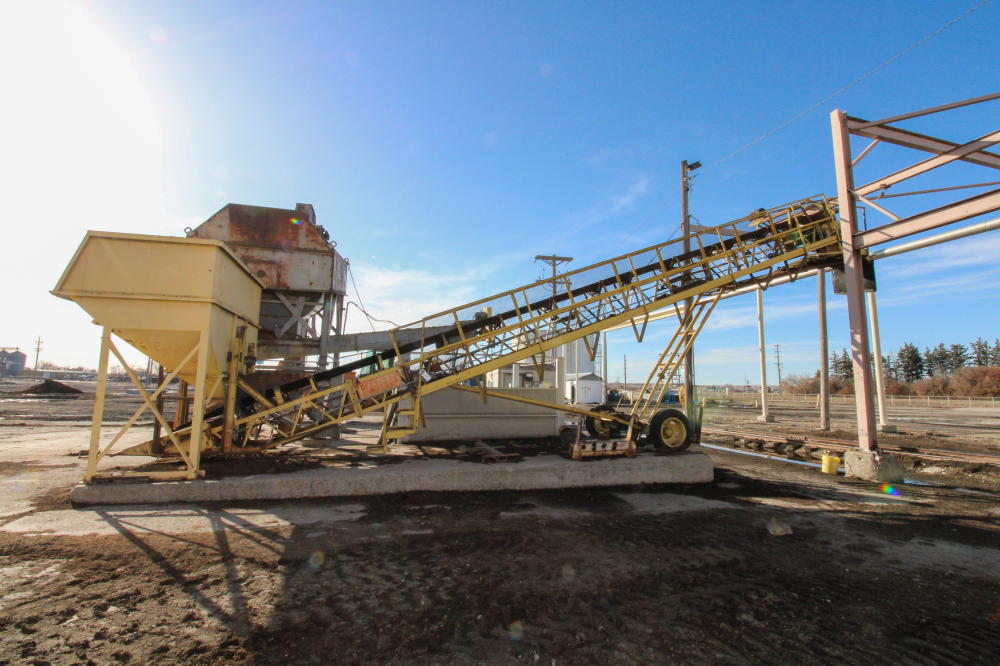 CONSISTING OF BUT NOT LIMITED TO: 18"W Scroll Conveyor, (est.) 20'L on (est.) 10' x 12' Fabricated Steel Stand; 20'T Bucket Elevator, 10"W Buckets; 10' Screen Drum; 4'W x 10'L Steel Hopper; Peerless Stacking Conveyor, SN: 9504, 30" x 45'L Rubber Belt, Single Axle, Truss Type, Attached Walkway