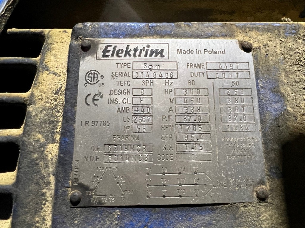 Consisting of but not necessarily limited to: Currently Configured to Produce Animal Feed/Heating Pellets, 5+-Tons Per Hour, 1800-RPMs, Elektrim SGM 300-HP Electric Motor, Frame 449T, SN 1148406; 60"L Top Mounted Feeder Auger, 3-HP Electric Motor, 182T Size; Approximately 60"L Mixer, 20-HP Electric Motor with Gear Drive, Frame 286U; Type 0-3629-23 Die, Die Current Set Up - 2.75" Effective with .25" Relief; WEM Automation Controls, Project #W15388, SN 11538801, Electrical Panel, Control Panel with Elo Super Logics PLC with Keyboard; Thermal Transfer A0-20-21021 Heat Exchanger, SN 1020797, 300-PSI, 400deg. F; CPM CC2424 Counterflow Cooler, SN 3A0381, 2006, CC2424AL Rotary Airlock with Gearmotor, Stainless Steel Exhaust Hood and Bin Walls, CC2424MGA Manual Gear Adjust, Approximately 96" x 96" Cooler Housing on Fabricated Steel Frame and Legs, Bottom Cone, Pellet Cooler Inlet Feeder; Estimated 12" x 108" Bottom Auger Conveyor Discharge; Fabricated Steel Mezzanine, I-Beam Columns, approximately 18'-9" x 15'-6" Area, Estimated 20'H, Poured Concrete Floors, (2) Flights of 32"W Steel Stairs, Hand Rails; Drag Chain Conveyor Elevator, 16"W x 15"D, "S" Shaped from Mill to Ceiling and Wall; Pellet Mill Exhaust Fan; Dust Collector including Conveyor Engineering & Manufacturing 24'L Auger Conveyor, 10-HP Electric Motor, Frame 215T, ID No. P21S3027; Falk 5207325A Quad Drive; MAC Cyclone Assembly including (3) Approximately 30" Diameter Cyclones with MAC 10'L Bottom Auger, Reliance 2-HP Electric Motor, MAC SS1767 Rotary Airlock; MAC 39AVBC38 Dust Collector, SN 102919-005-1 with MAC MD139 Rotary Airlock, SN 81044-0045-1; Twin City Blower 926 RBR-SW 9FL 52 Blower Fan, SN 06-221362-1-1, Teco Westinghouse MAX-E 150-HP Eletric Motor, Frame 445T, SN FR AC065024-3; Includes Operations/Parts/Service Manuals. Modine Steam Heater; Winch Assembly; Oil Cooler and Oil Pump Motor; Die Hoist and Lift Plate.