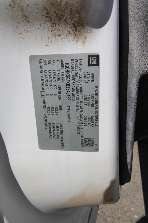 2011, Pickup Truck, Extended Cab, 4x4, Automatic Transmission, 5.3L V8 Gas Engine, A/C, Cruise Control, Power Locks and Windows, BlueTooth, Work Light, 6.5' Bed, Bed Liner, Towing Package, No Tailgate; 135,000 Indicated Odometer Miles (MILES SUBJECT TO CHANGE DUE TO VEHICLE STILL BEING IN USE AT THE SITE);NOTE: Vehicle Runs/Drives but has Multiple Dash Warning Lights on: Traction Control, ABS, Service Engine, Service Stabilitrak, Service Tire Monitoring System