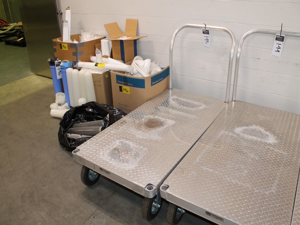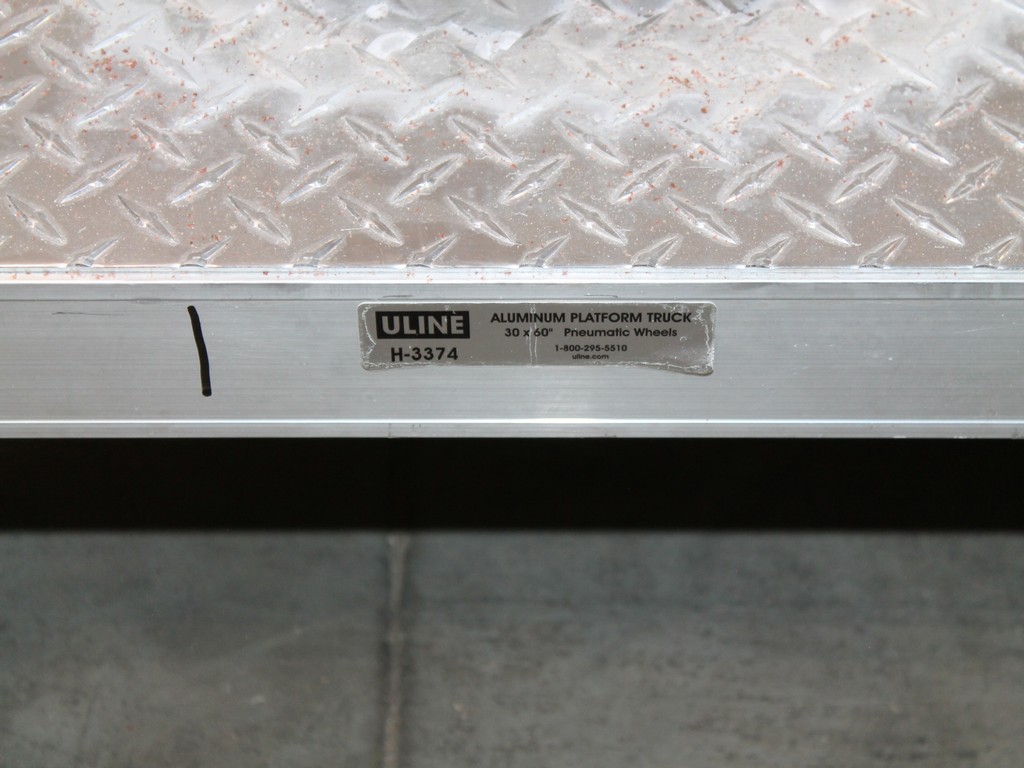 Aluminum, Pneumatic Wheels, 30" x 60", 8" Casters, Removeable Handle, 1,200 lb. capacity. NOTE: Has One Flat Wheel.