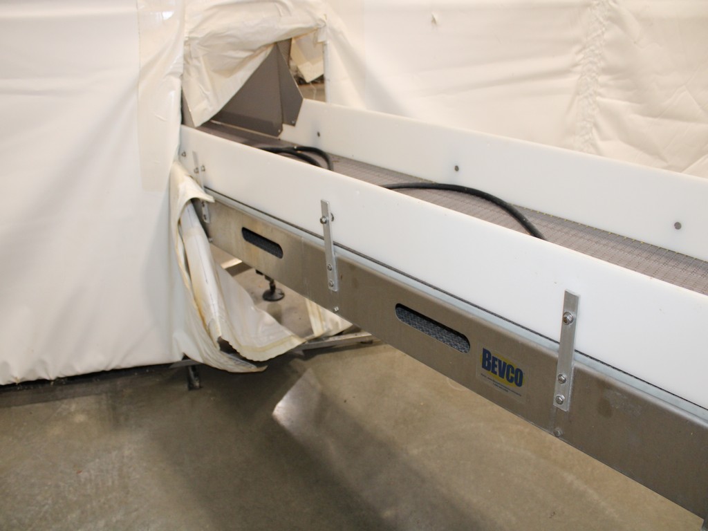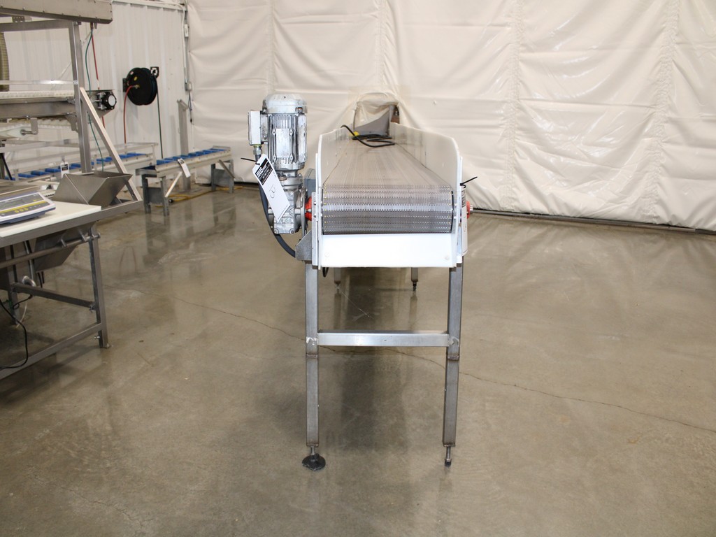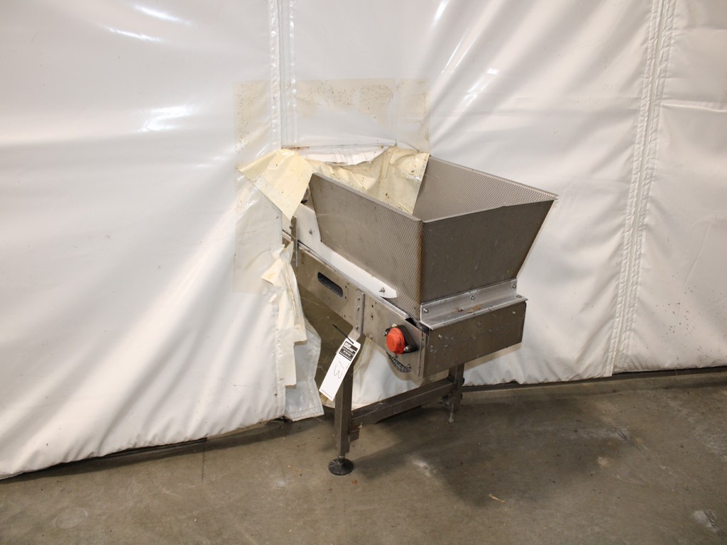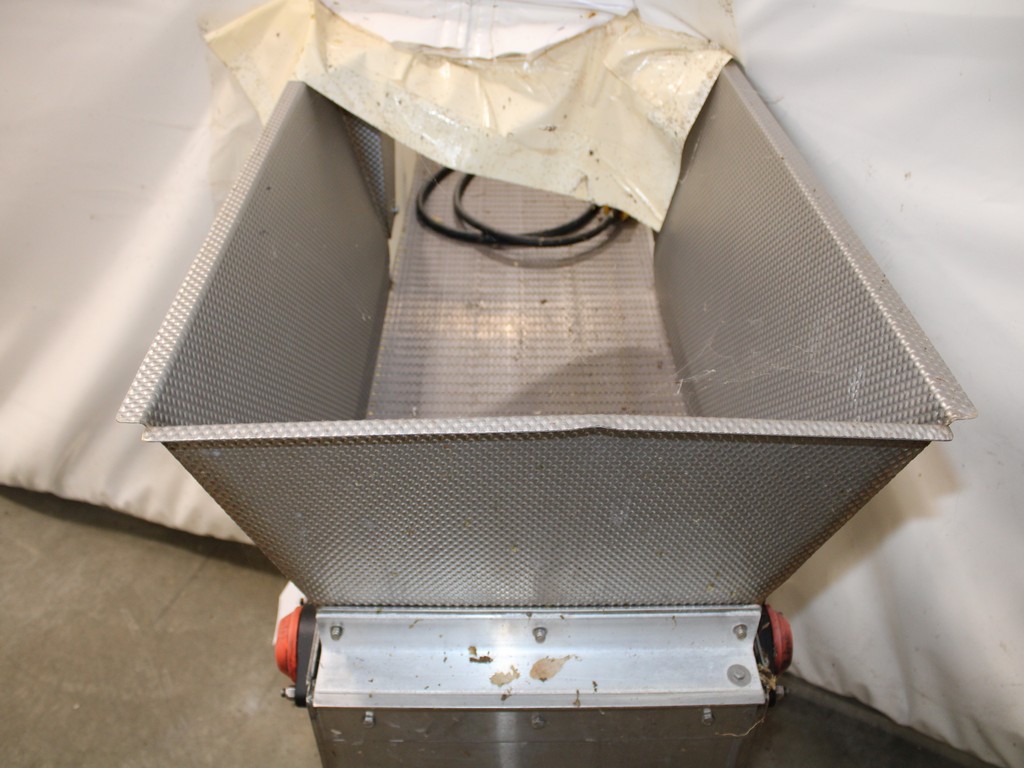 18"W x 19'L, Stainless Steel, 6" Plastic Sides, (4) Adjustable Steel Legs, 1-HP Electric Motor.