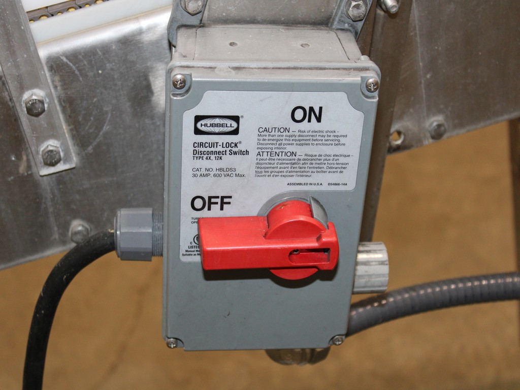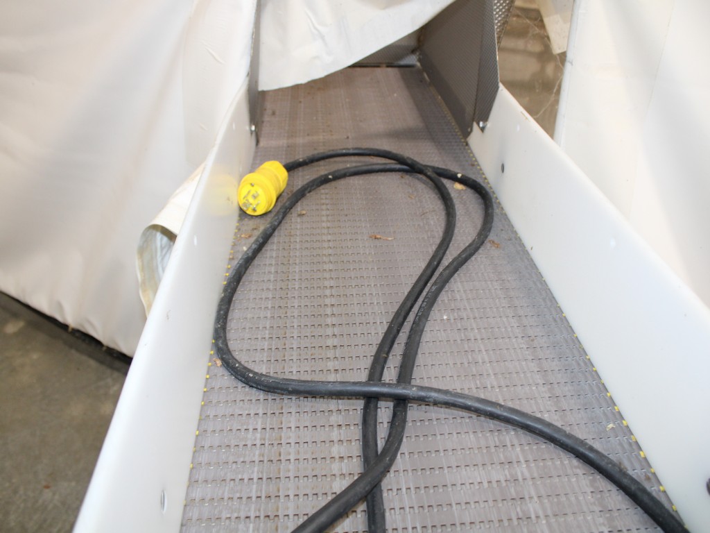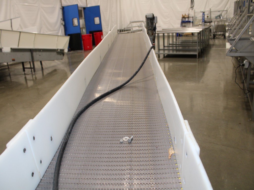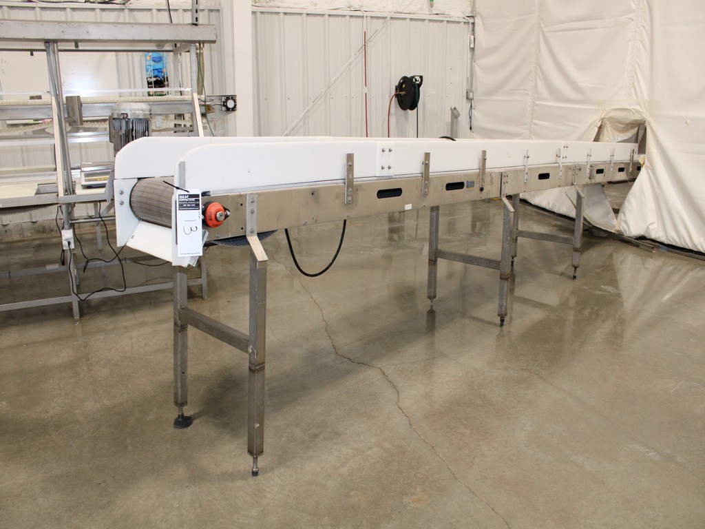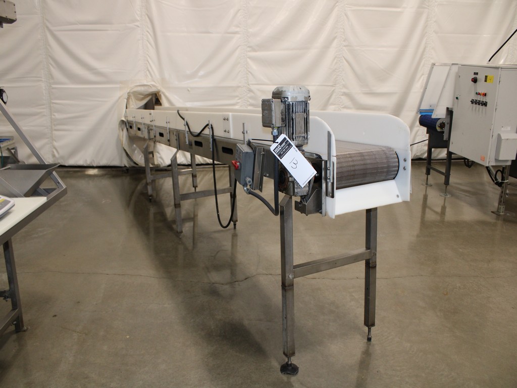 18"W x 19'L, Stainless Steel, 6" Plastic Sides, (4) Adjustable Steel Legs, 1-HP Electric Motor.