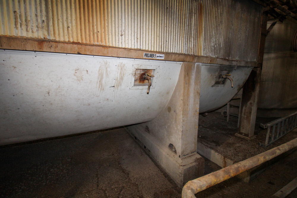 CONSISTING OF BUT NOT LIMITED TO: Pre-Limer Tank, Mild Steel, Curved Bottom, Estimated 16'H x 30'L x 10'W, Center Shaft Mounted Agitator/Mixer, Belt Drive, 25-HP Electric Motor, (6) Outlet Valves