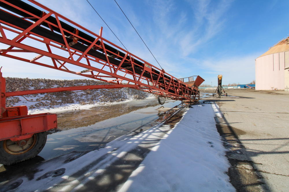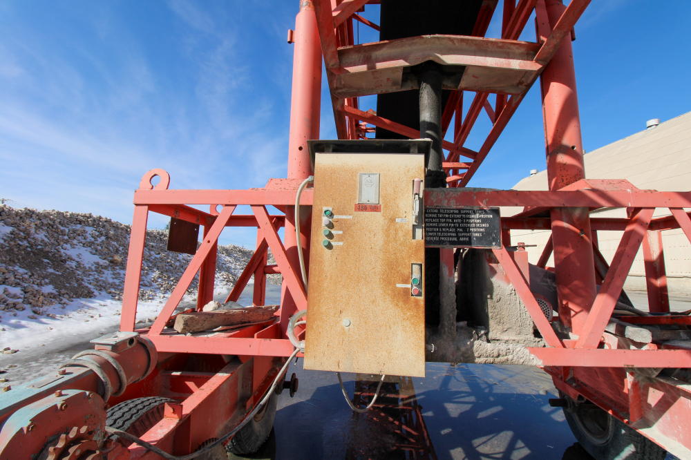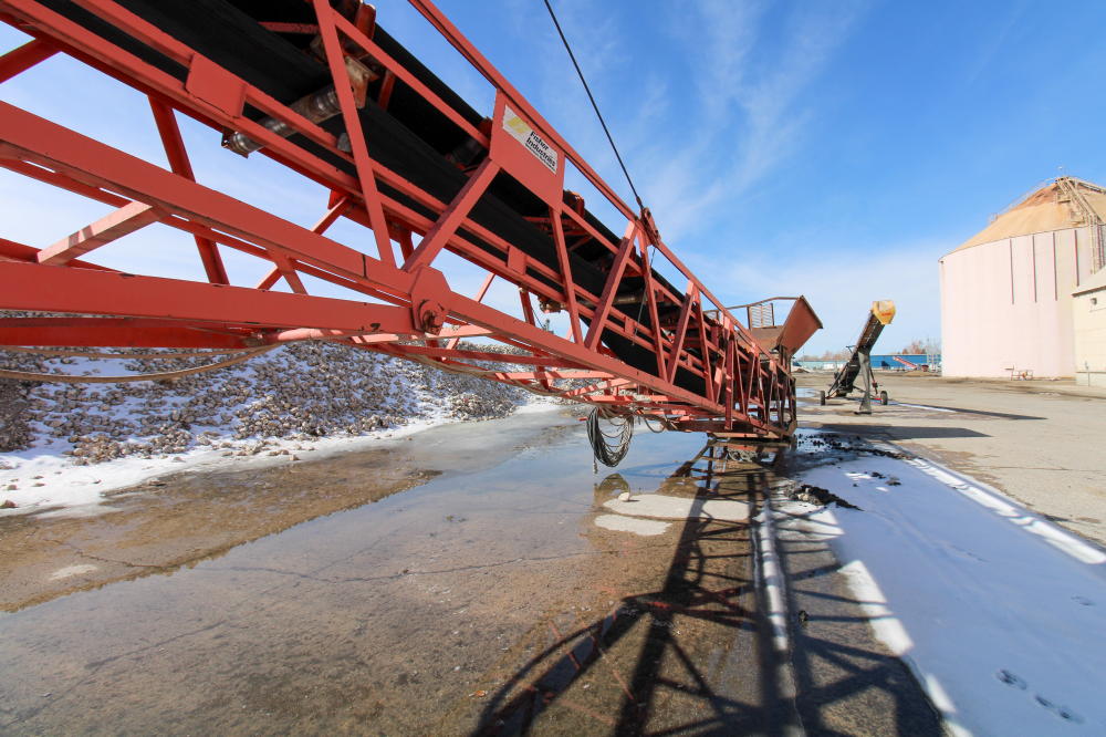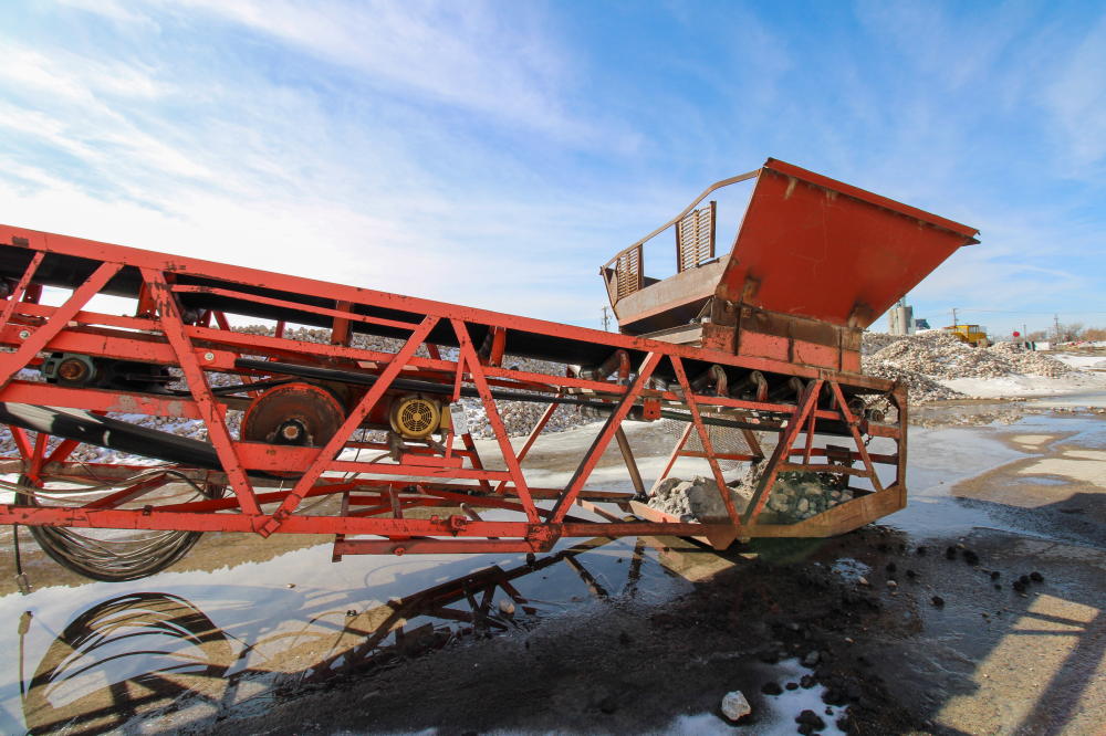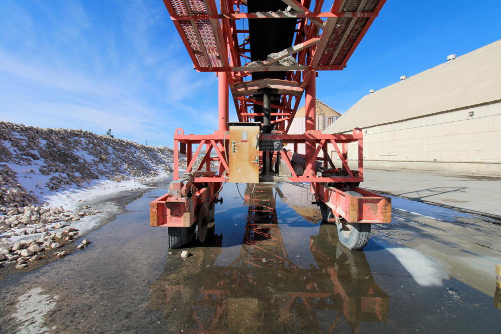 1990, Approximately 10'L x 6'W x 5'D Hopper, 36" Rubber Belt, 125'L Truss Type Frame with Fold Up end, 50-hp Baldor Motor, Tandem Axle Carrier
