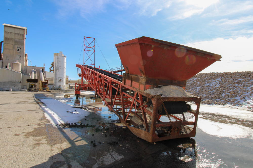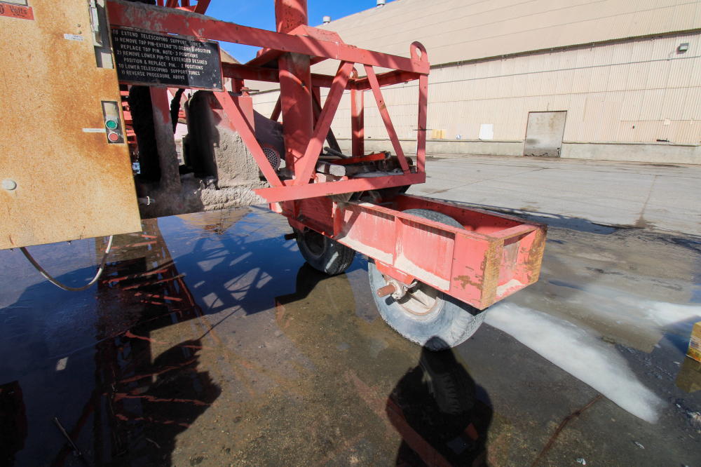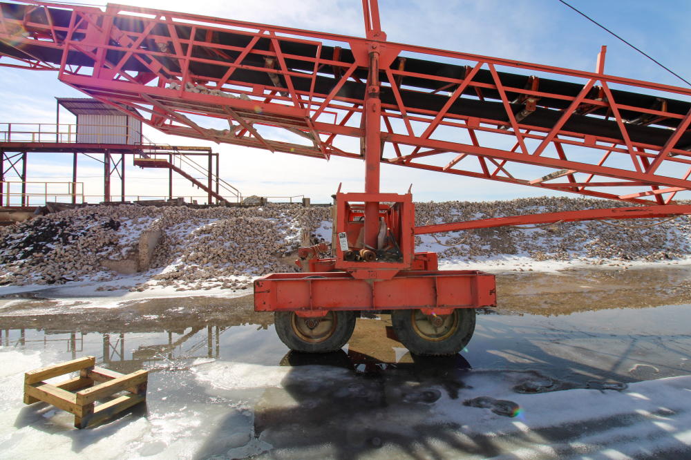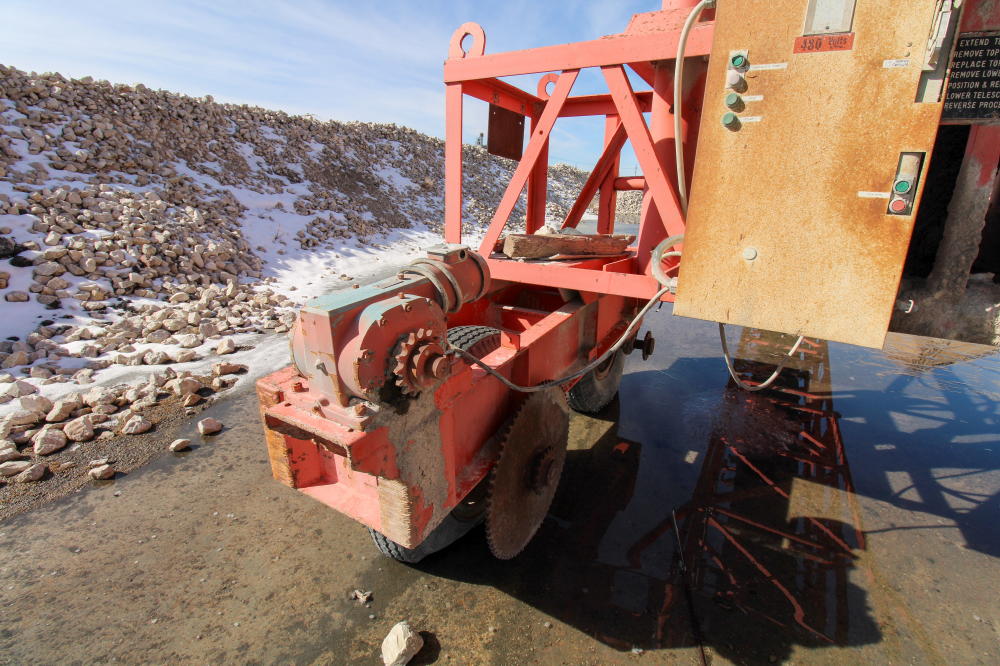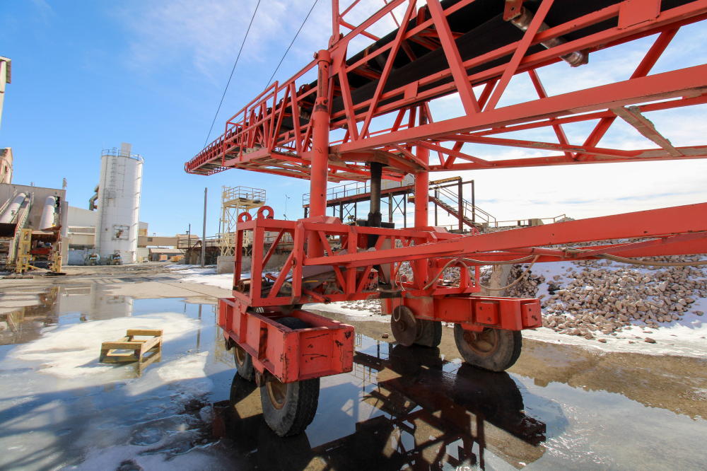 1990, Approximately 10'L x 6'W x 5'D Hopper, 36" Rubber Belt, 125'L Truss Type Frame with Fold Up end, 50-hp Baldor Motor, Tandem Axle Carrier