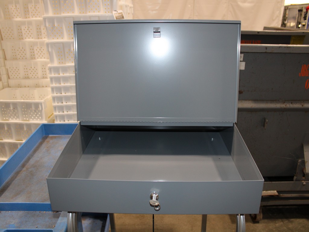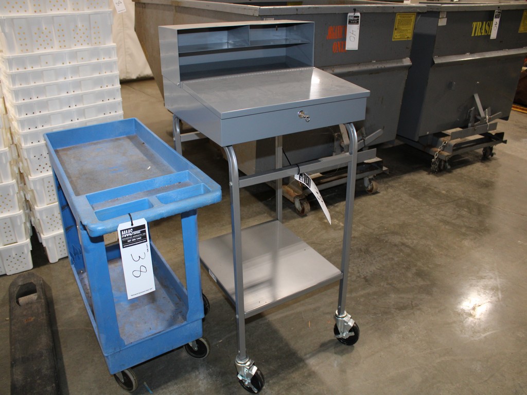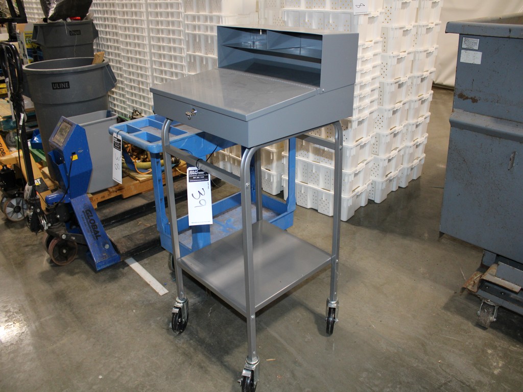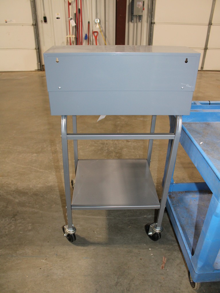 2'W x 22?"D Metal Desk, Mounted on 38"H Rolling Cart.