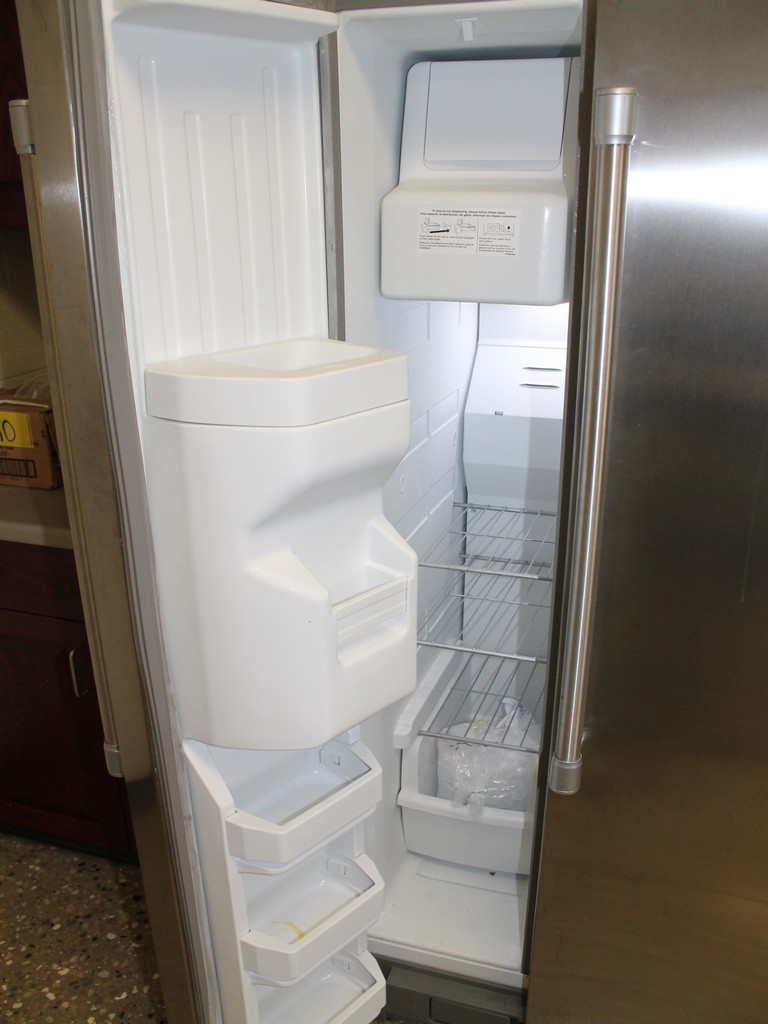 Refrigerator Freezer, Side By Side, Stainless Steel, 21 cu. ft., Water and Ice Dispenser, 33"W.