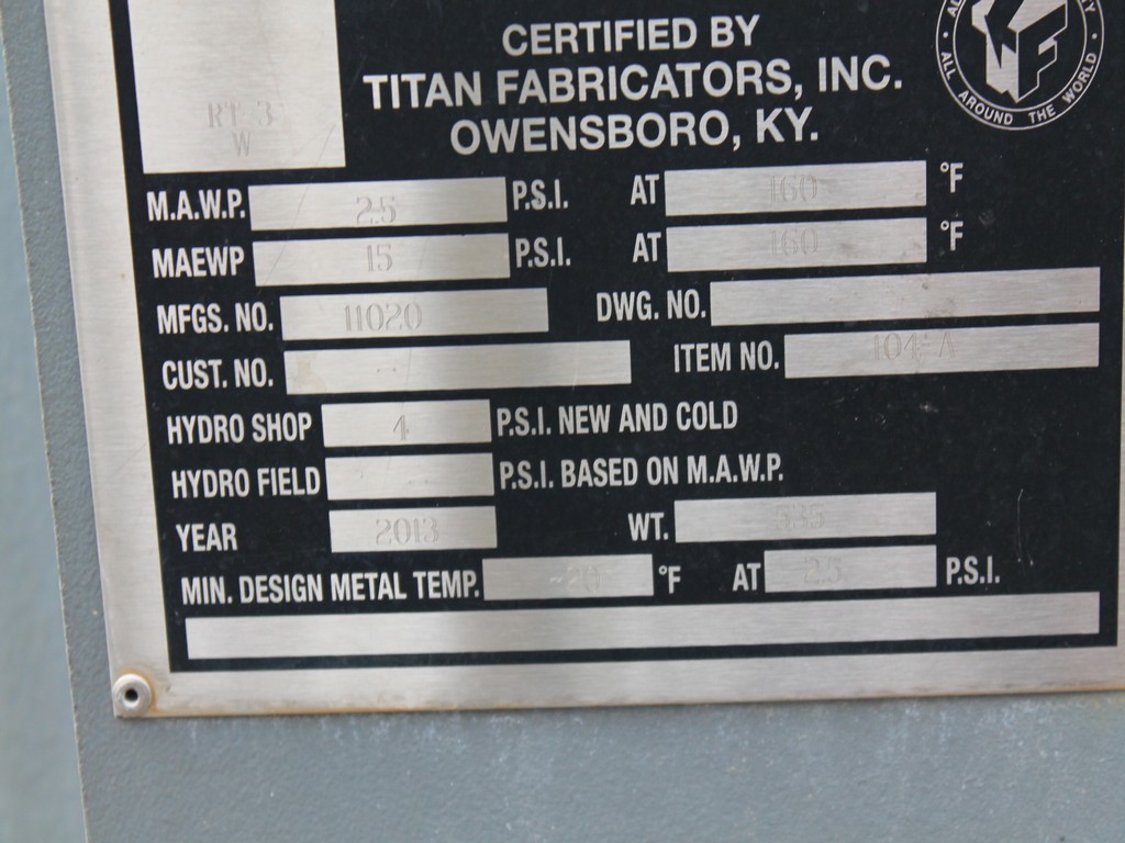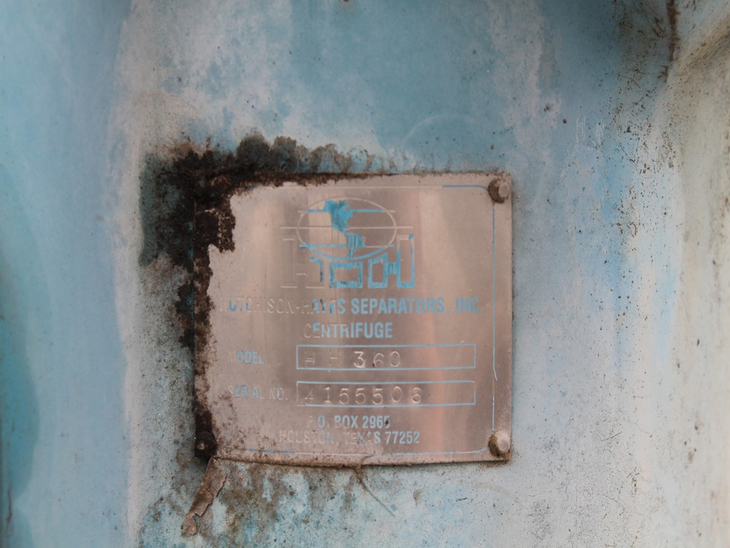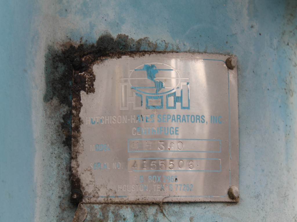 Consisting of but not necessarily limited to: Manufactured in 2007, 10' Long x 32' Long, Rated at 12.5 Million Gallons per Year; HUTCHISON SEPARATORS HH360 Centrifuge, SN 4155506, BALDOR 7.5-HP Electric Motor; KREIDO HTC0074 Reactor, SN 000101, 2007; Centrifuge Surge Drum, No. 11-V-104A, SN 151, 812 Gallon Capacity, 24" Dia. Side Manway, LIGTNIN Top Mounted Agitator, BALDOR 5-HP Electric Motor, WILLIAMS 15F2 Valve; Centrifuge Heavy Phase Drum, No. 11-V-114A, SN 159, 162 Gallon Capacity; PUMP PAC Hydraulic Power Pack, Stainless Steel, 22" x 12" x 12" Reservoir Tank, 2" Outlet, ENARDO Bi-Directional Model 301/D-IL-440; SKF Hydraulic Power Pack, Part No. ZR190X2-BW200-V2, SN 0001, 23" x 35" x 19" Stainless Reservoir, 2 BALDOR 1.5-HP Motors, Model 131002980 Heat Exchanger; 2 VIKING GG4193 Pumps, Foot Mounted with Flanged Portals, 1-HP Motor; VIKING AK4193 Pump, SN 11993172, RELIANCE 3-HP Electric Motor; ITT SY5463000004005-463-24-025-001 Heat Exchanger; 2 FISHER Actuators; BETTIS Sending Units; TITAN FABRICATORS Tank, Item No. 104-A, Manufactured in 2013, Mfg. No. 11020, Top and Side Outlets