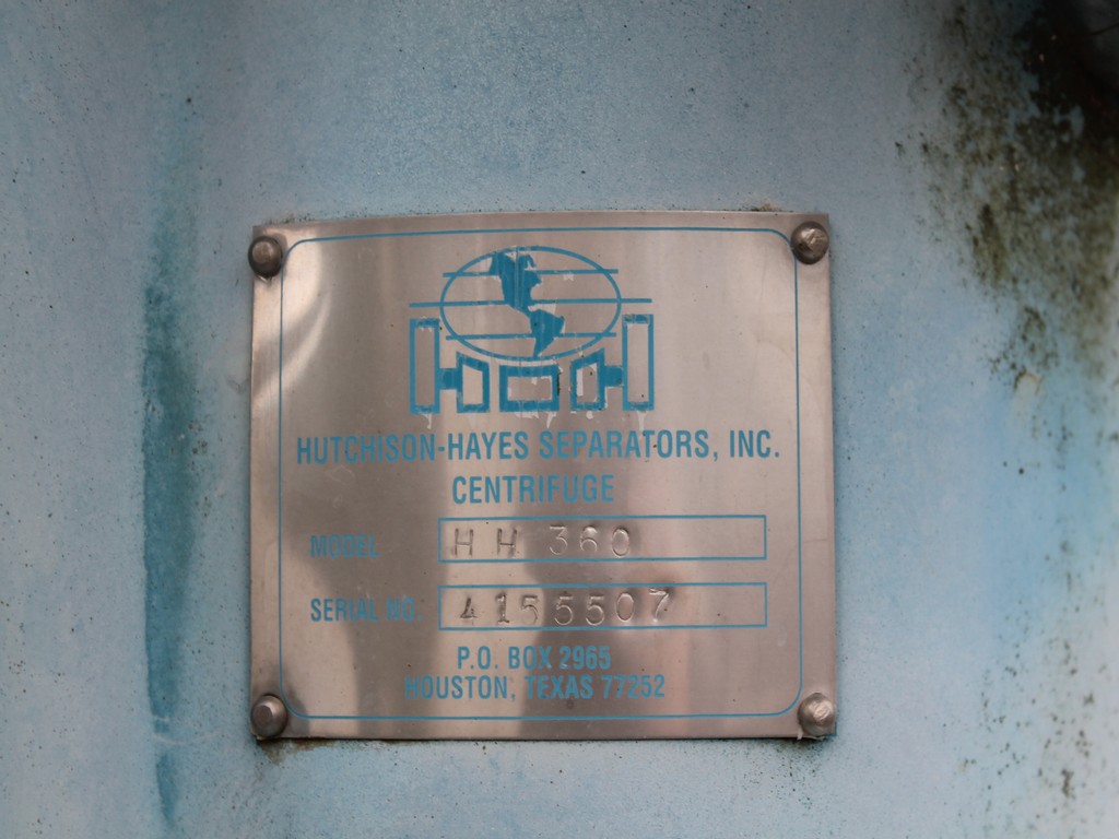 Consisting of but not necessarily limited to: Manufactured in 2007, 10' Long x 32' Long, Rated at 12.5 Million Gallons per Year; HUTCHISON SEPARATORS HH360 Centrifuge, SN 4155507, BALDOR 7.5-HP Electric Motor; KREIDO HTC0074 Reactor, SN 000100, 2007; Centrifuge Surge Drum, No. 11-V-104B, SN 152, 812 Gallon Capacity, 24" Dia. Side Manway, LIGTNIN Top Mounted Agitator, BALDOR 5-HP Electric Motor, WILLIAMS 15F2 Valve; Centrifuge Heavy Phase Drum, No. 11-V-114A, SN 160, 162 Gallon Capacity; PUMP PAC Hydraulic Power Pack, Stainless Steel, 22" x 12" x 12" Reservoir Tank, 2" Outlet, ENARDO Bi-Directional Model 301/D-IL-440; SKF Hydraulic Power Pack, Part No. ZR190X2BW200V1, SN 0002, 23" x 35" x 19" Stainless Reservoir, 2 BALDOR 1.5-HP Motors, Model 131002980 Heat Exchanger; ITT SY5463000004005-463-24-025-001 Heat Exchanger; FISHER Actuators; BETTIS Sending Units