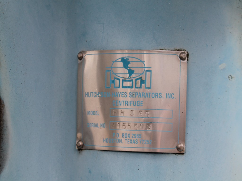 Consisting of but not necessarily limited to: Manufactured in 2007, 10' Long x 32' Long, Rated at 12.5 Million Gallons per Year; HUTCHISON SEPARATORS HH360 Centrifuge, SN 4155508, BALDOR 7.5-HP Electric Motor; KREIDO HTC0074 Reactor, SN 000100, 2007 (Not Assembled - in INOVATION CENTER BUILDING); Centrifuge Surge Drum, No. 11-V-104B, SN 153, 812 Gallon Capacity, 24" Dia. Side Manway, LIGTNIN Top Mounted Agitator, BALDOR 5-HP Electric Motor, WILLIAMS 15F2 Valve; Centrifuge Heavy Phase Drum, No. 11-V-114A, SN 161, 162 Gallon Capacity; PUMP PAC Hydraulic Power Pack, Stainless Steel, 22" x 12" x 12" Reservoir Tank, 2" Outlet, ENARDO Bi-Directional Model 301/D-IL-440 (Not Assembled - in INOVATION CENTER BUILDING); SKF Hydraulic Power Pack, Part No. ZR190X2BW200V1, SN 0002, 23" x 35" x 19" Stainless Reservoir, 2 BALDOR 1.5-HP Motors, Model 131002980 Heat Exchanger (Not Assembled - in INOVATION CENTER BUILDING); VIKING AK4193 Pump, SN 11993171, RELIANCE 3-HP Electric Motor; ITT SY5463000004005-463-24-025-001 Heat Exchanger; FISHER Actuators; BETTIS Sending Units