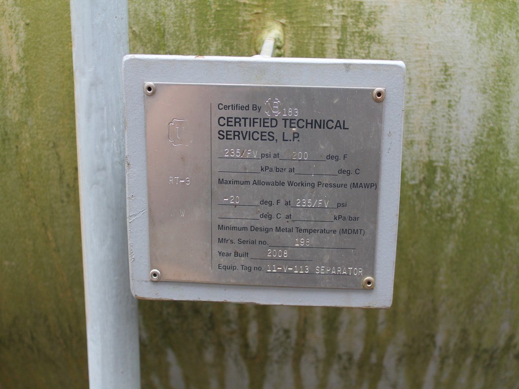 Consisting of but not necessarily limited to: Manufactured in 2008; 8" Wide x 17'L Skid, Rod and Bar Grating Floor; Feed Drum, Tank 11-V-105 C/L, SN 154, 1029 Gallons Nominal Capacity; Separator Tank, Tank 11-V-113, SN 198, Approximately 110 Gallon Capacity; MANUFACTURER UNKNOWN Pump, 3-HP Electric Motor; FISHER Type 585C Actuator, Size 25; 2 Fisher Actuators; Vertical Vent Scrubber, No. 11-C-104; .75-HP Pump Motor (No Pump); GOULDS Pump with 15-HP Electric Motor; GEERCO 4-TSPLMSS Pump, 15-HP Electric Motor