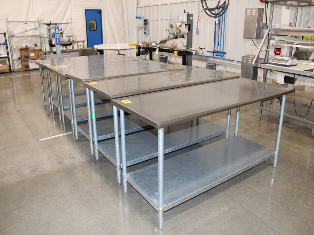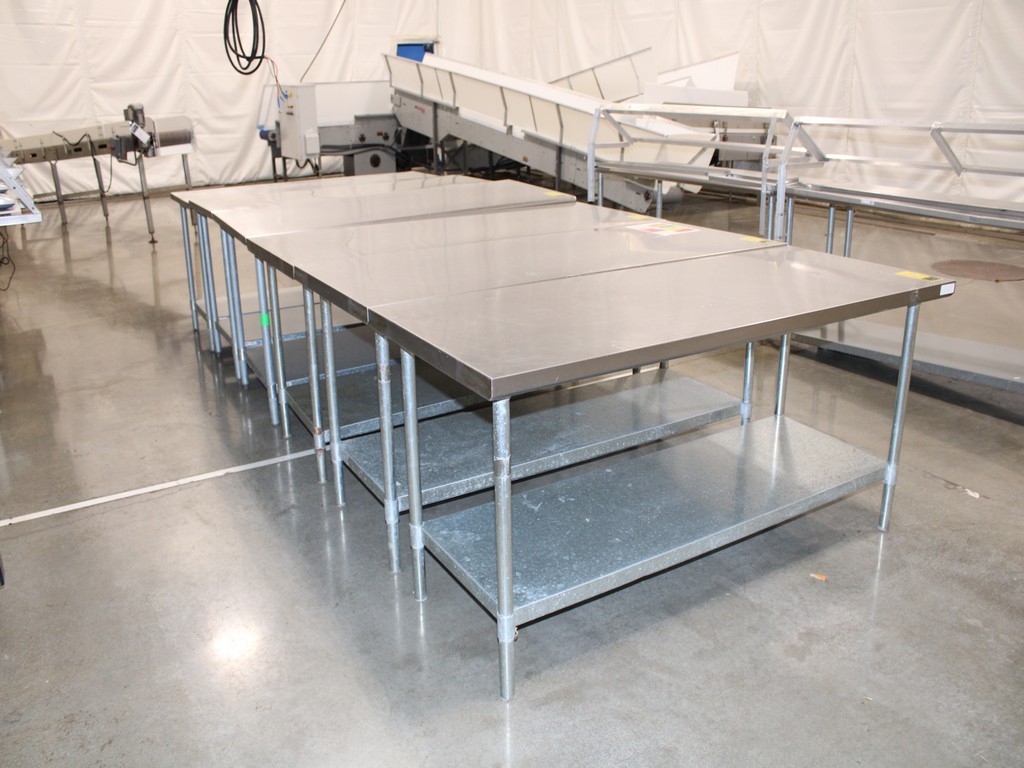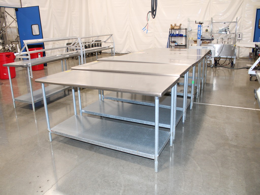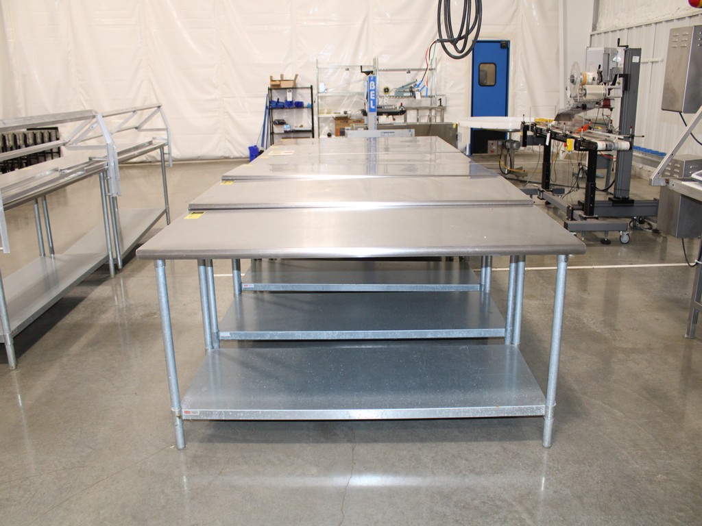 Consisting of but not limited to: 30"W x 6'L, Stainless Steel Top, Tube Legs, Adjustable Undershelf.