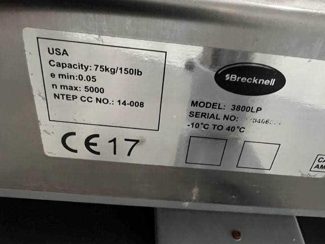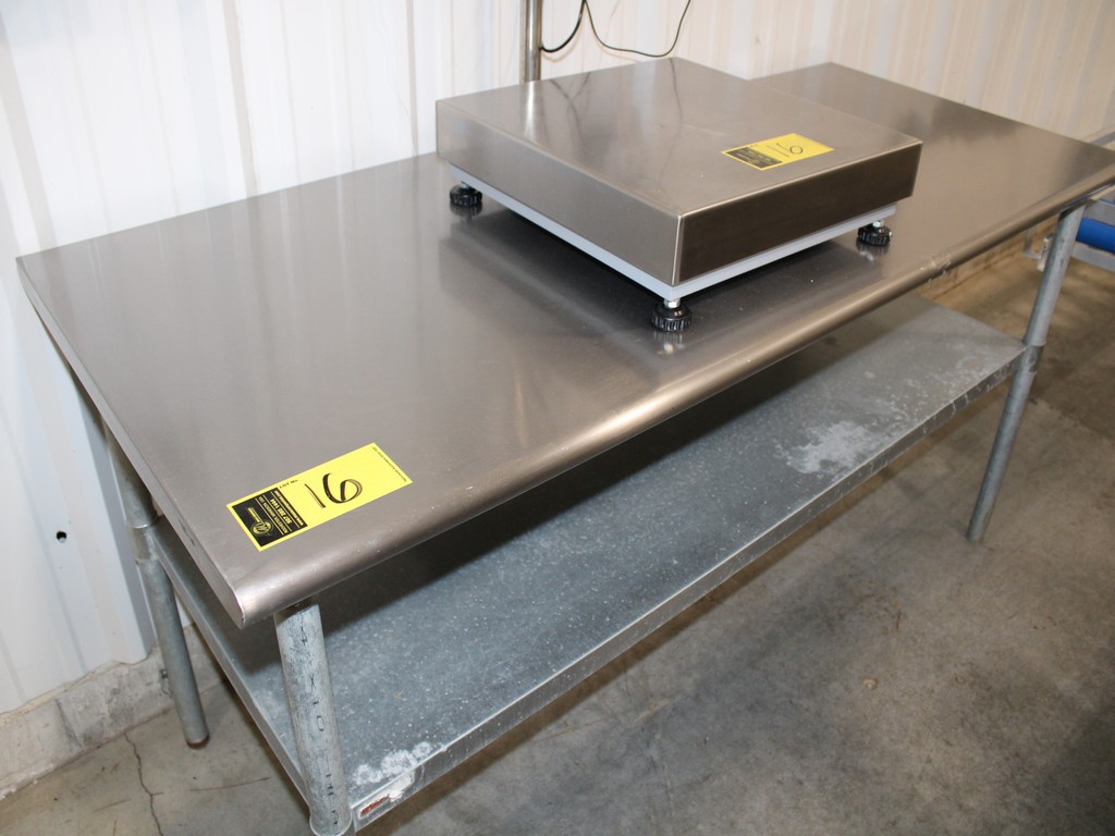 Consisting of but not limited to: 30"W x 6'L, Stainless Steel Top, Tube Legs, Adjustable Undershelf; BRECKNELL SBI-505 19?" x 19?" Platform Table Scale, 150# Capacity.