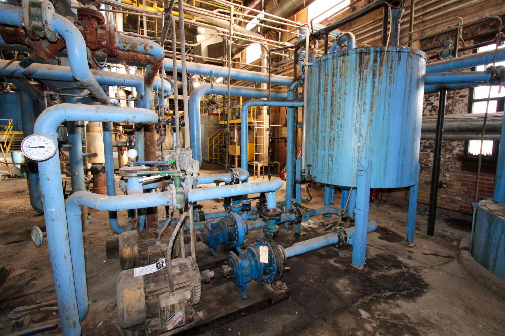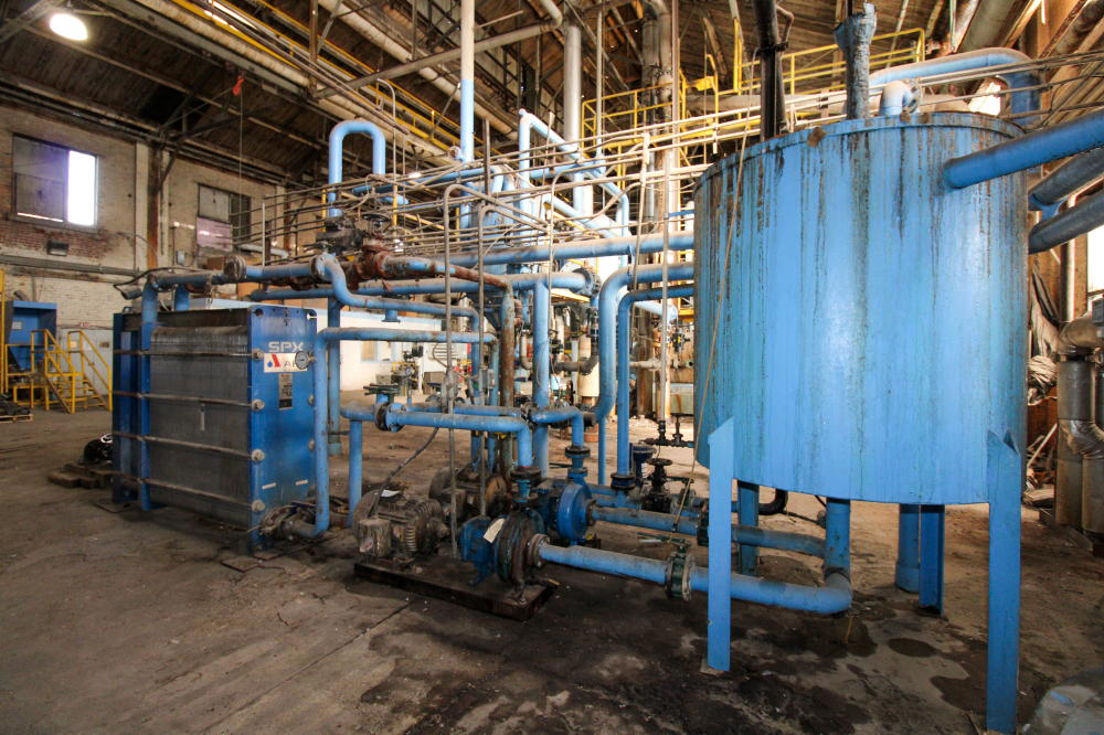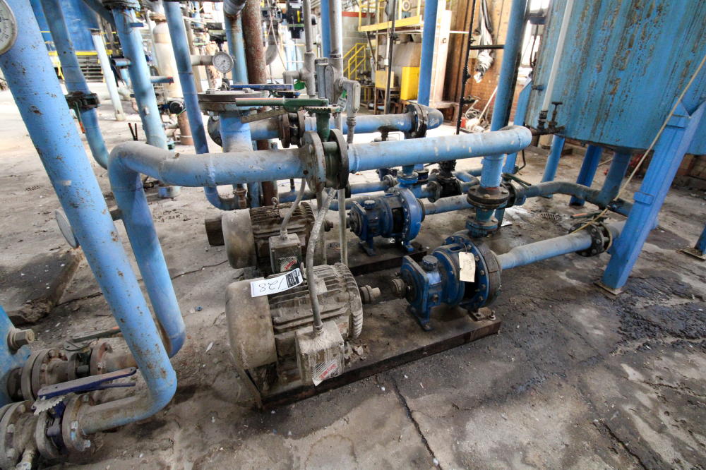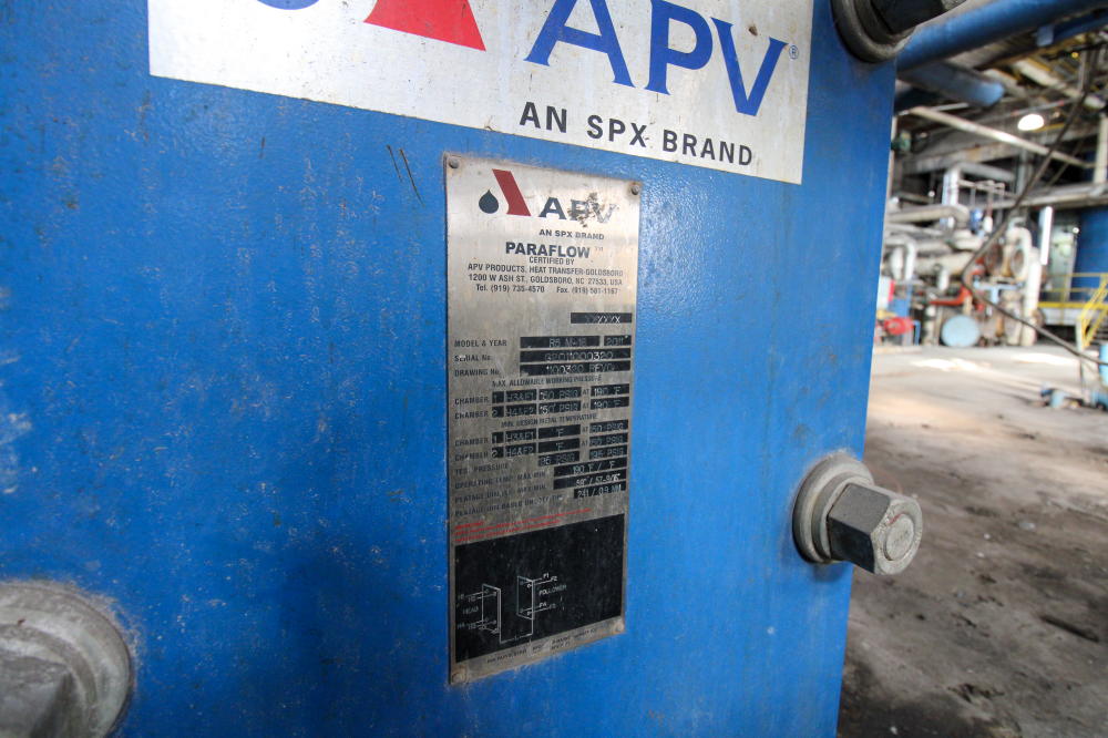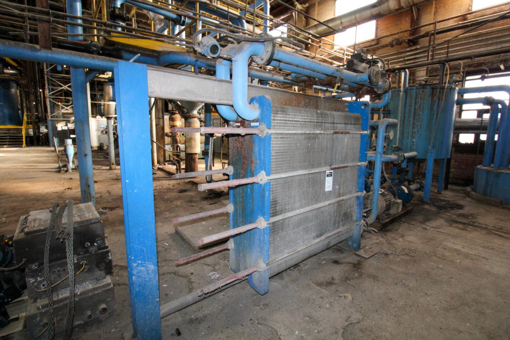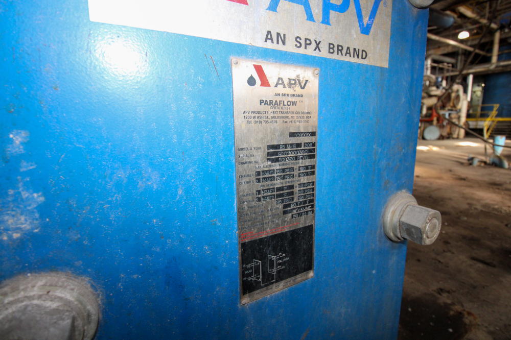 CONSISTING OF BUT NOT LIMITED TO: Mild Steel Tank, Estimated 6' Diameter x 5'H, Vertical, On Legs; (2) Peerless 3" Pumps with 30-HP Electric Motor; APV R5M-16 Plate and Frame Heat Exchanger, SN G2011000320, 2011, 50-PSI @ 190 deg. F; Mild Steel Tank, 18" Diameter x 60"H, Top Lid, Mounted on Floor