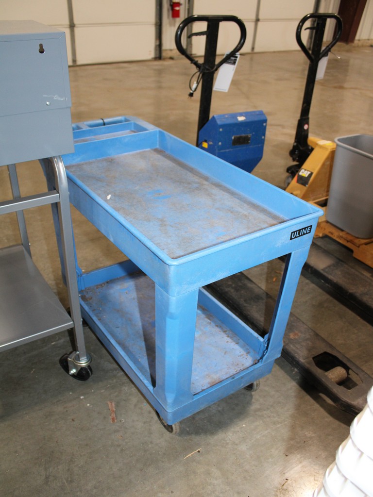 4-Wheels, Molded Plastic, (2) Shelves, 18"W x 30"L.