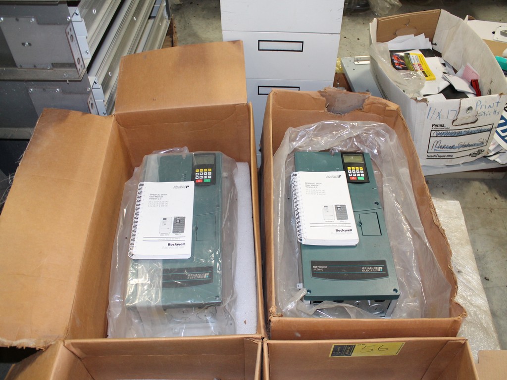 UNUSED: 4-BALDOR VS1SP42-4B Inverter Drives, SNs H0709190009, H0709190010, H0709190006, H0709190008; 8-RELIANCE ELECTRIC SP600 A-C Drives; 13- TB WOOD'S E-TRACX4 AC Drives; 2-RELIANCE ELECTRIC MD60 AC Drives