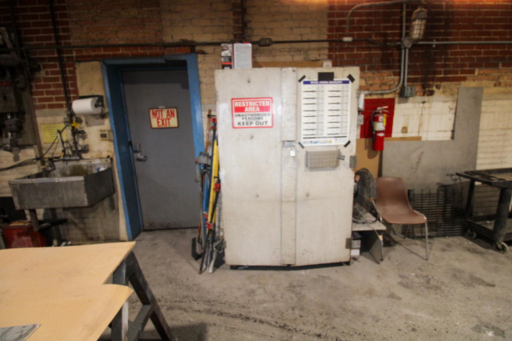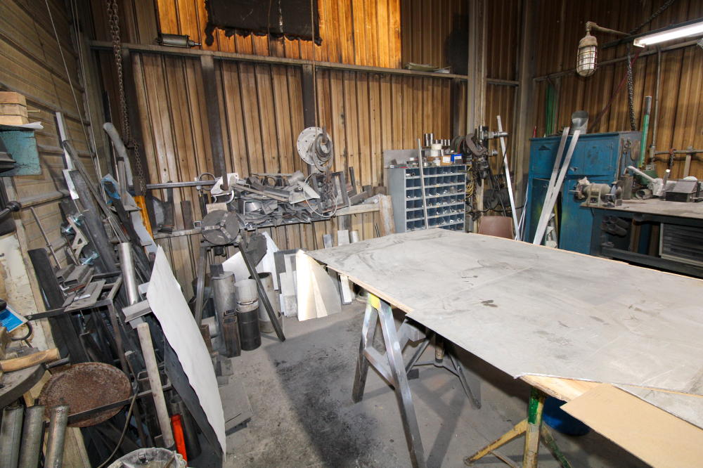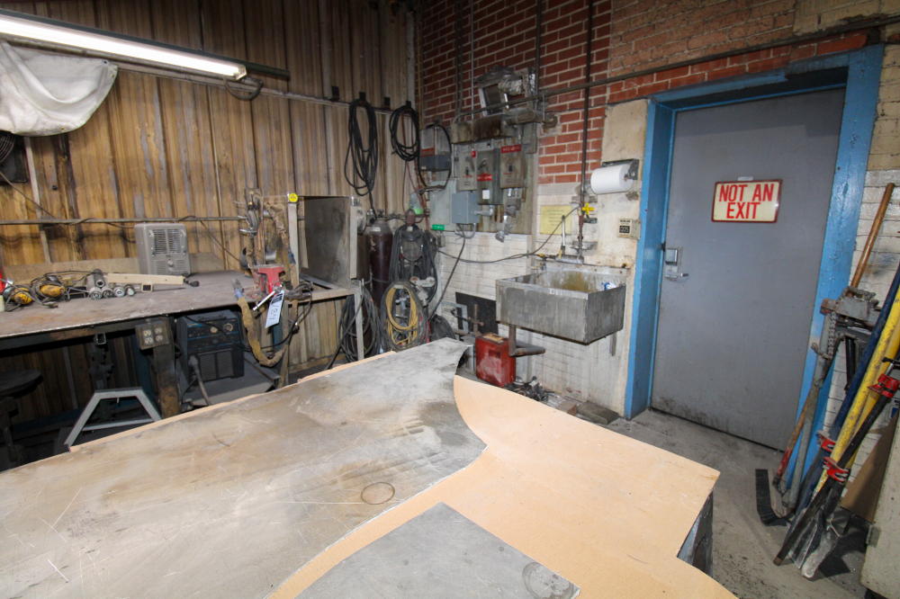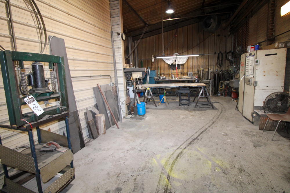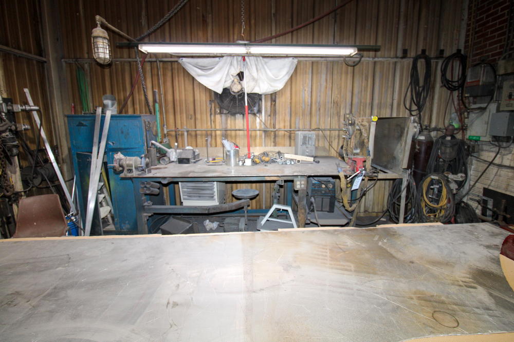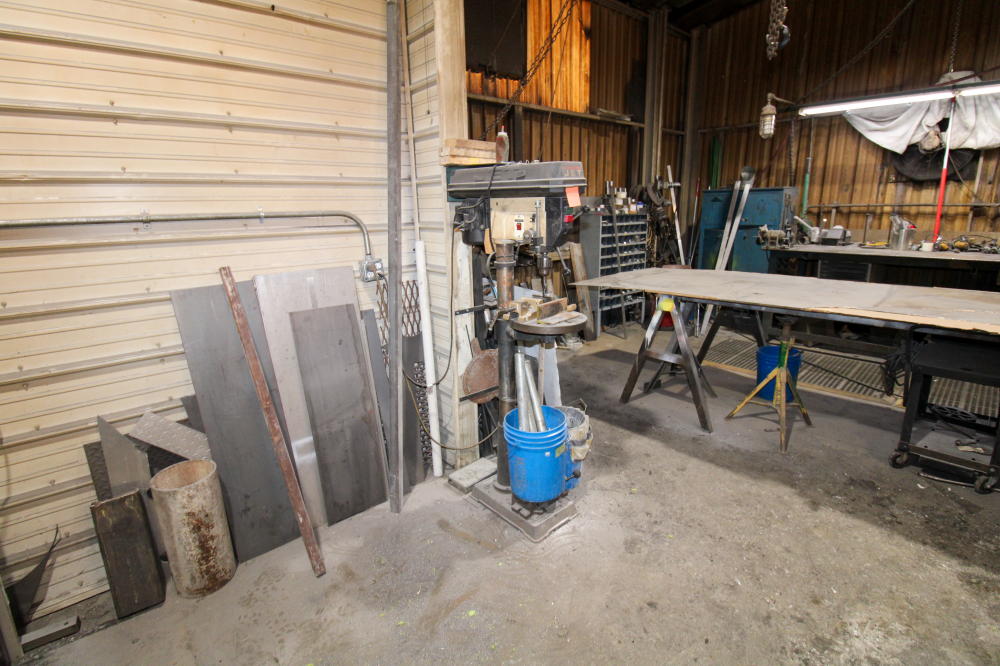 CONSISTING OF BUT NOT LIMITED TO: Jet JDP-17MF Drill Press, SN: 8100004; Wilton Bench Vise; Miller Spectrum 1000 DC Plasma Cutter, Various Weld Sticks; Metal Cabinet wtih Various Nuts and Bolts; Dual End 6" Bench Grinder; 3-Jaw Chuck, Various Sheets of Steel and Angle Iron; (2) 4'W Metal Saw Horses; Roll Up Door