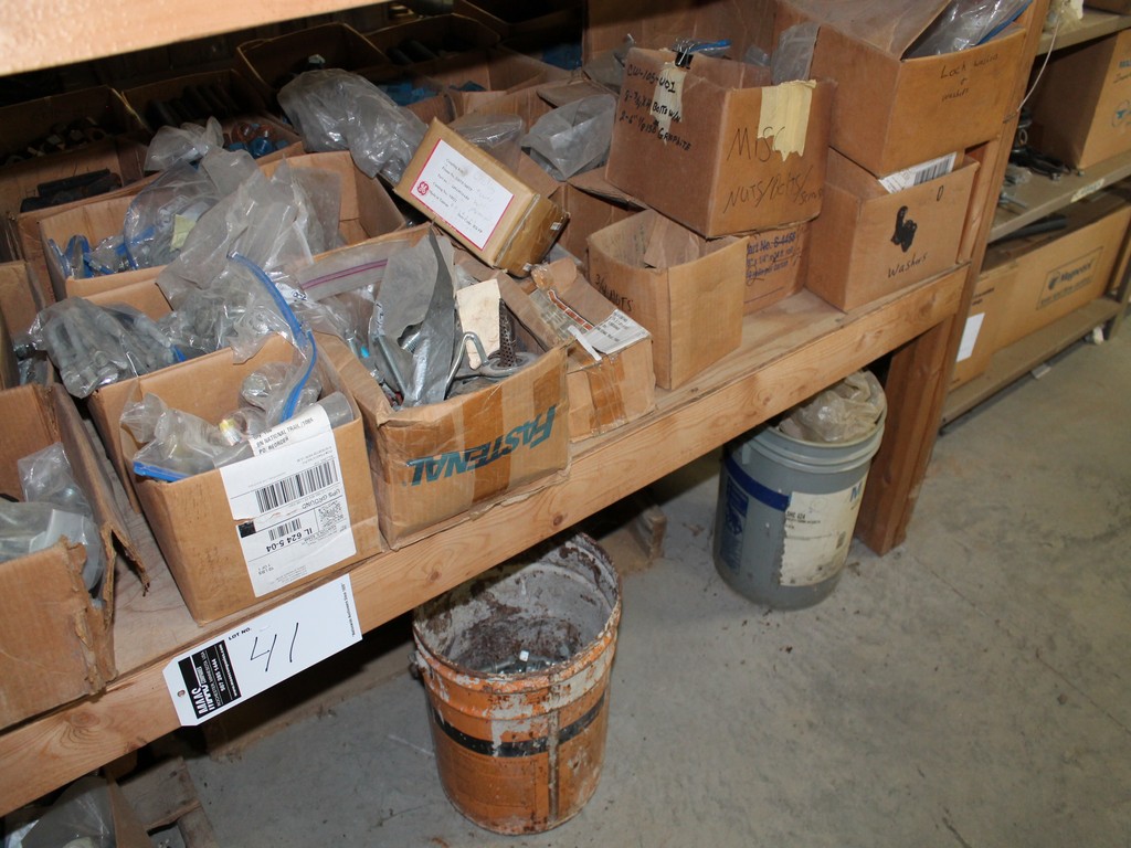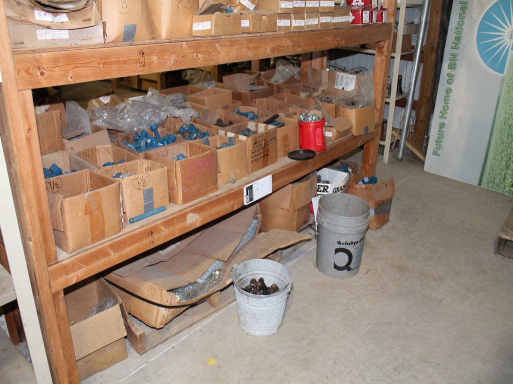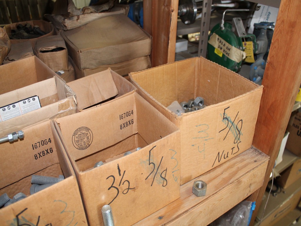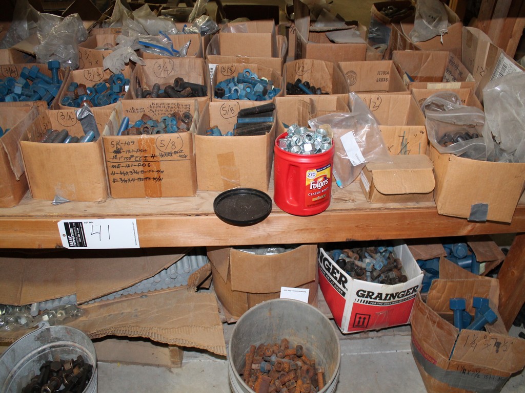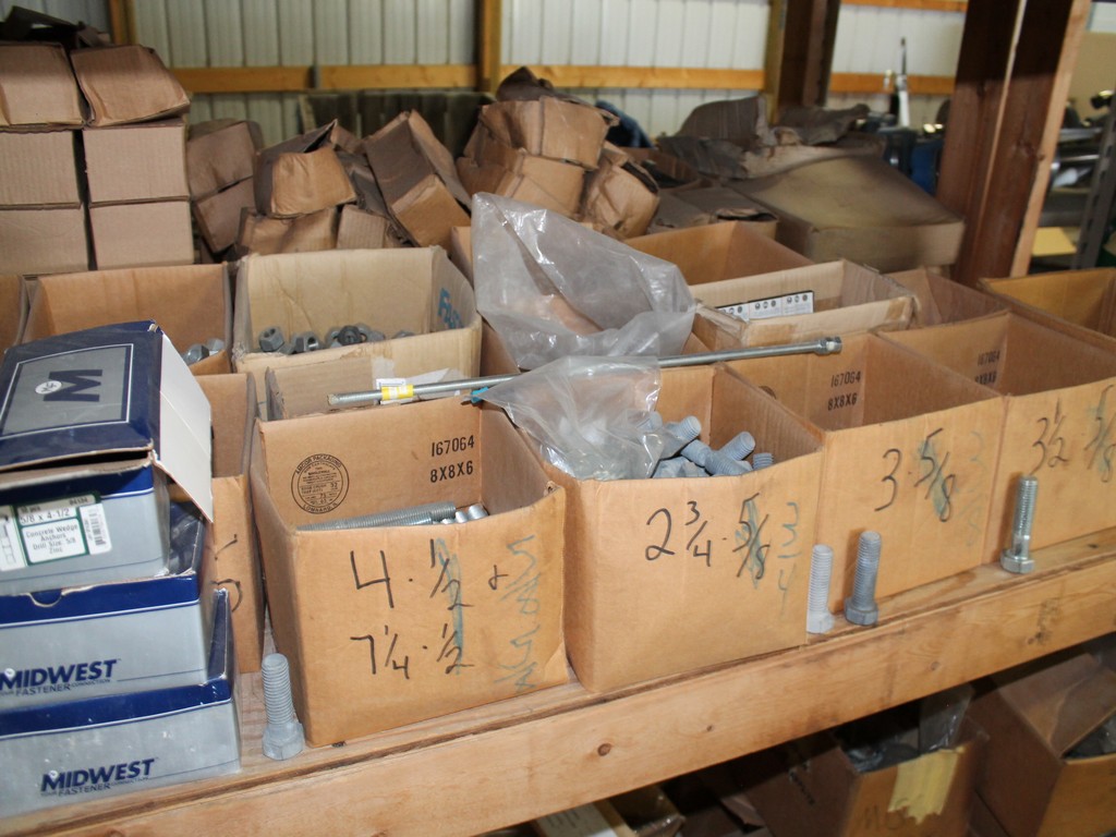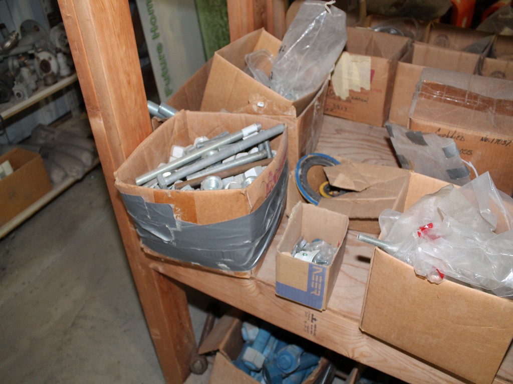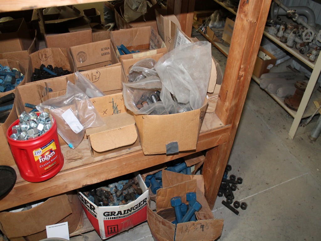 Consisting of but not necessarily limited to: 2-Shelf Units: Hardware, Nuts, Bolts, Screws, Stud and Nut Sets, Sending Units, 2-Buckets of Miscellaneous Used Nuts and Bolts