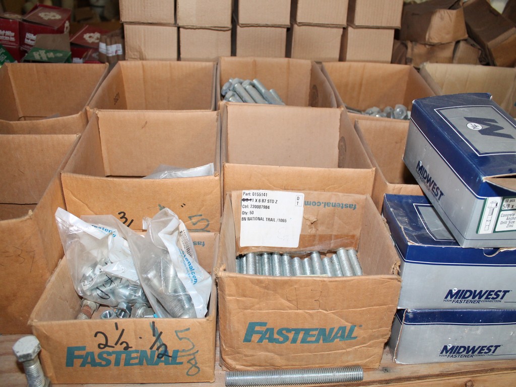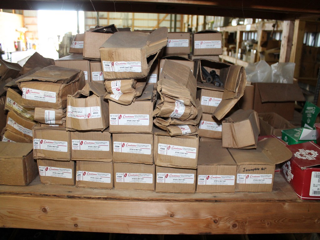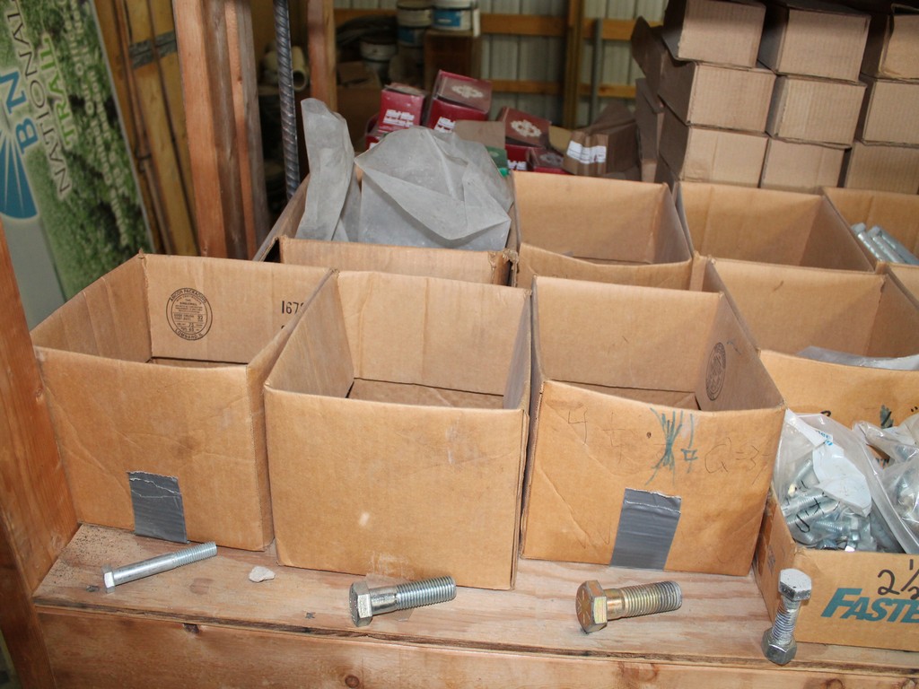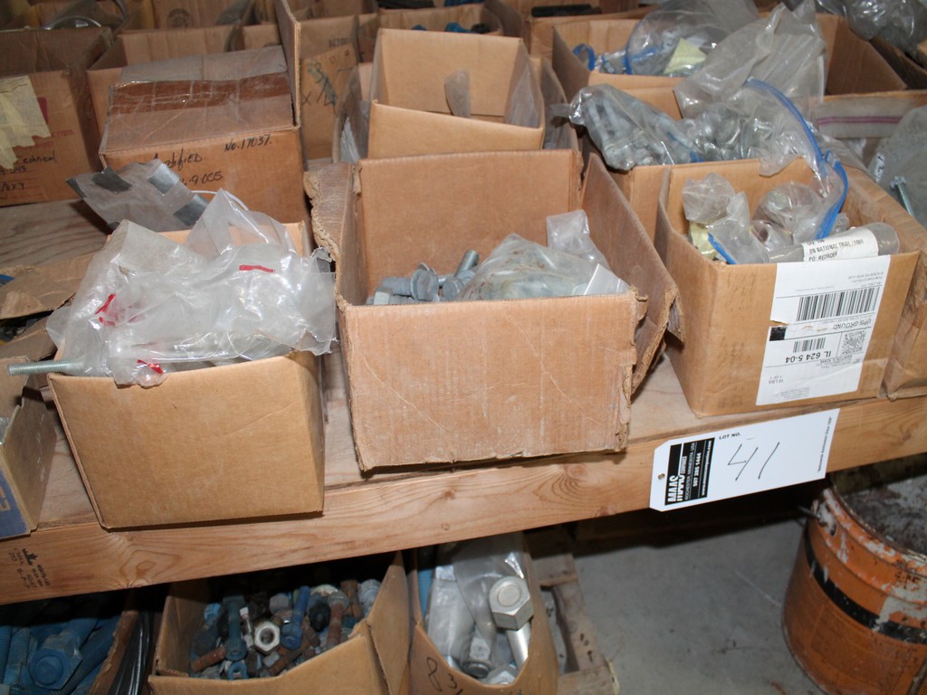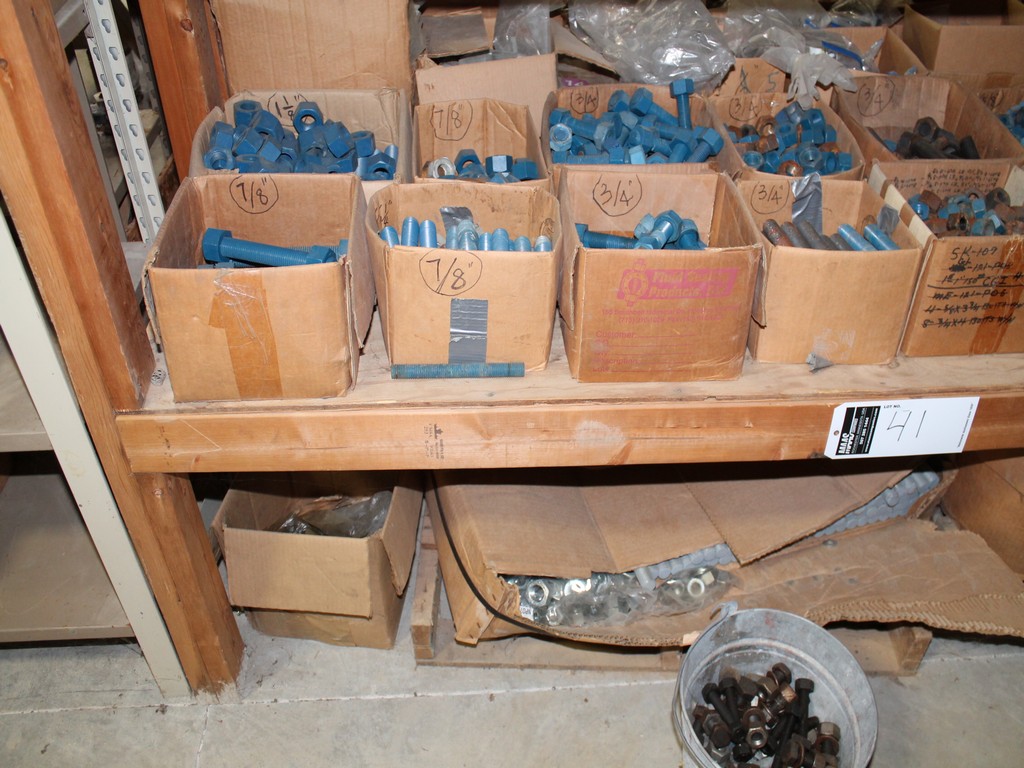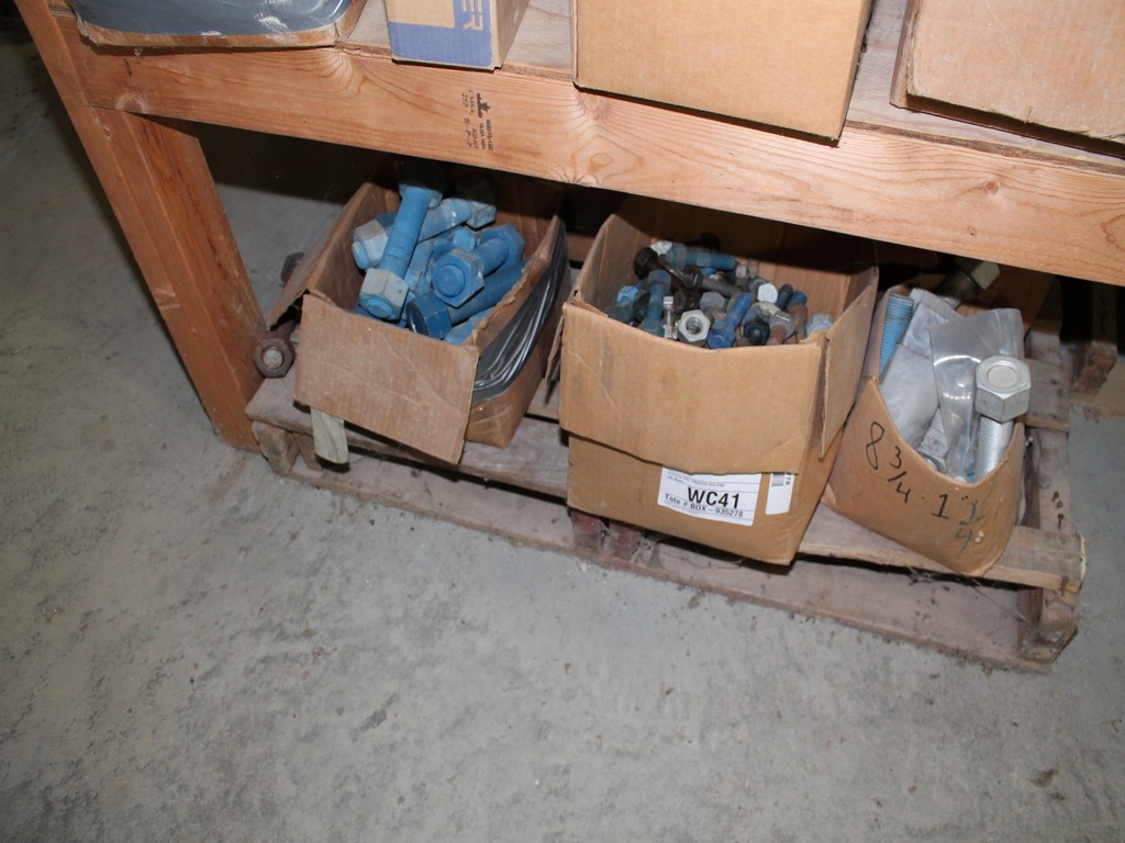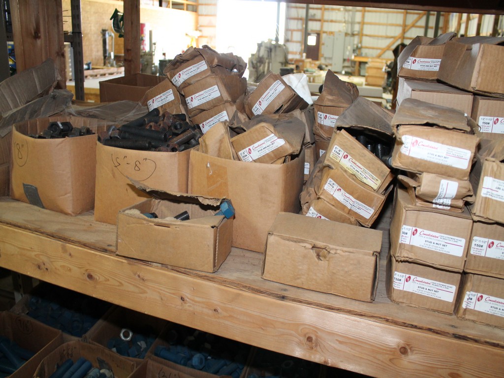 Consisting of but not necessarily limited to: 2-Shelf Units: Hardware, Nuts, Bolts, Screws, Stud and Nut Sets, Sending Units, 2-Buckets of Miscellaneous Used Nuts and Bolts