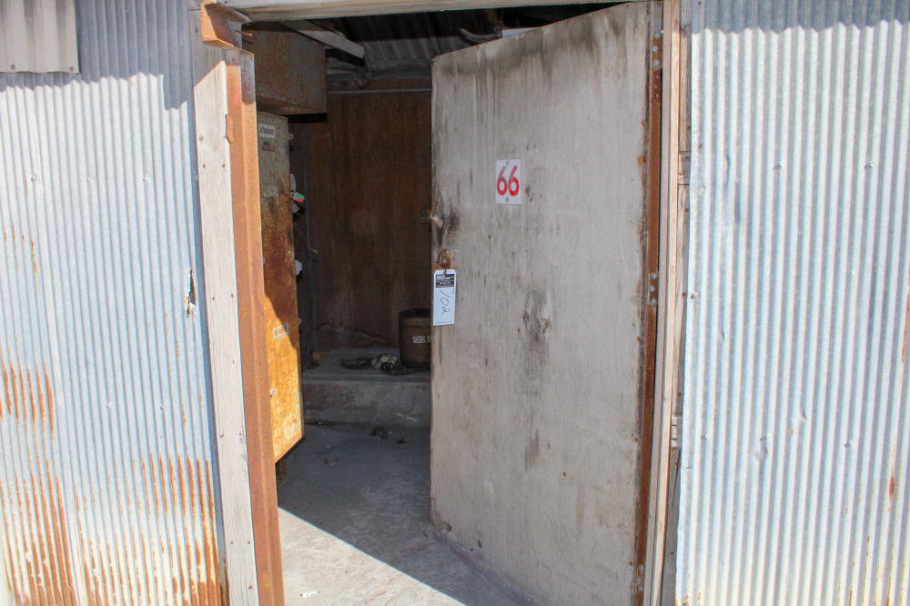 CONSISTING OF BUT NOT LIMITED TO: 100' x 80' Metal Building; 50'L x 77.5"W x 102"T Steel Mezzanine, (est.) 45'L Undershelf; 12'T 2-Tiered Steel Rack, 77.5"W x (est.) 23'L; Various Used Motors, Conveyor Belts, Gears, Springs, Pipe Fittings, Rubber Belt Chains; GE 20/10-HP Induction Motor, SN: FH6263052; (2) Garage Doors