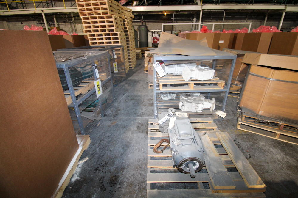 CONSISTING OF BUT NOT LIMITED TO: Roder 4" Pump with 15-HP Motor; Pallet Racking with (80) Pallet Positions, Containing Large Assortment of Used Electric Motors, 5-HP to 300-HP, 480-Volt; (9) Skids of Used Motors, (est.) 30-HP to 200-HP; (2) 100-HP Wrapped Motors; Skid with Wrapped 400-HP Motor, 4160-Volt; (24) Sections of Steel Shelving, 42"W x 24