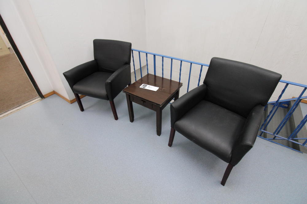 CONSISTING OF BUT NOT LIMITED TO: Bunn VP.17-2 Coffee Maker, (3) Carafes; 20.5" x 20.5" Wooden Side Table, Drawer; (2) Padded Side Chairs, 4-legs