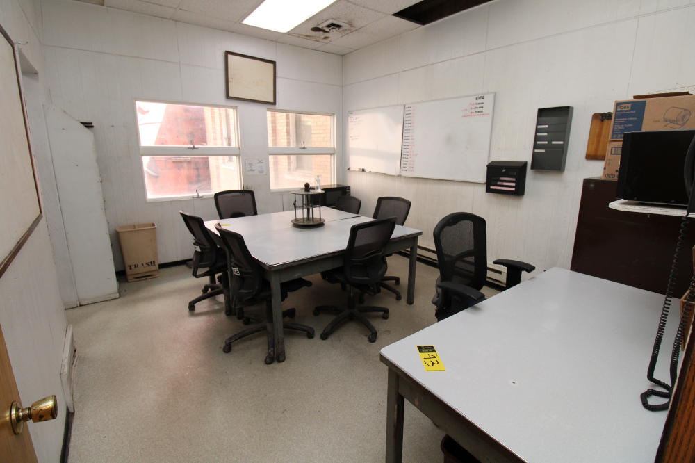 CONSISTING OF BUT NOT LIMITED TO: (3) 30" x 60" Metal Desks with Drawers; 33" x 59" Metal Desk with Drawers; 47.5" Diameter Wood Grain Laminate Top Table; (3) Padded 5-Roller Base Office Chairs; (2) Padded 5-Roller Base Office Chairs, Arm Rests; 5-Roller Base Office Chair with Mesh Back, Arm Rests; (4) Metal 4-Drawer Filing Cabinets; Metal Bookcase