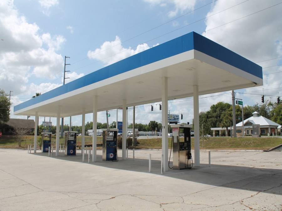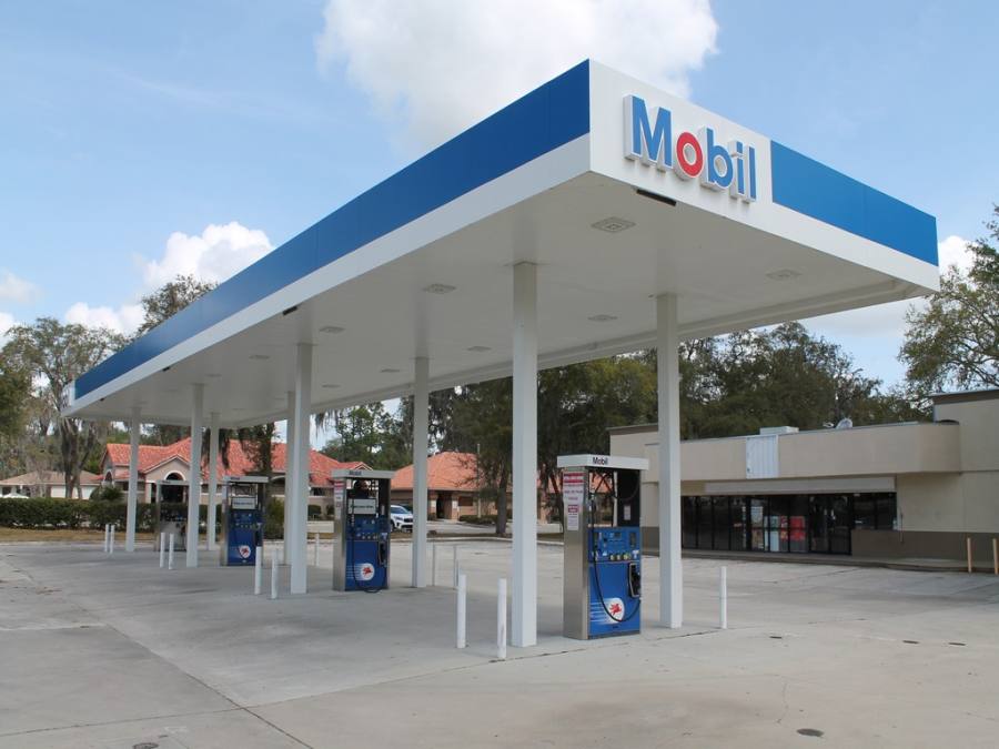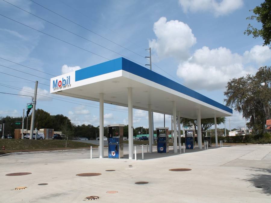 Steel Fascia with MOBIL Logo 16-New Surface Mounted LED Fixtures
