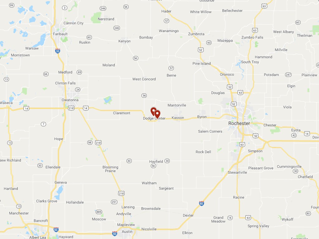 Located conveniently between Owatonna and Rochester, Dodge Center is home to many large manufacturing companies and is just minutes to Rochester, the home of Mayo Clinic and Destination Medical Center.