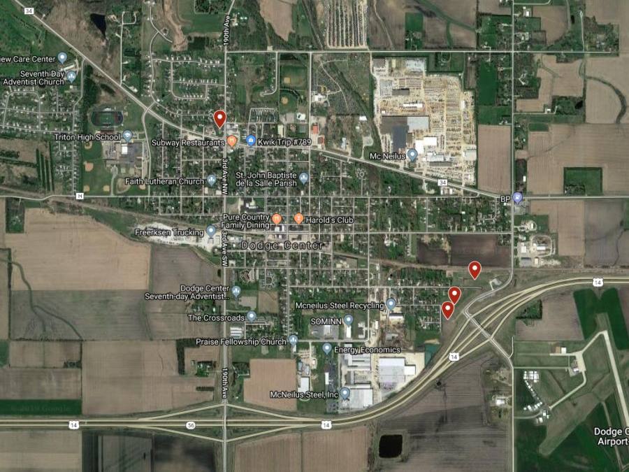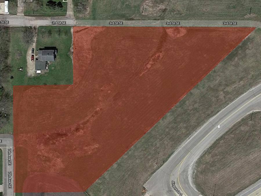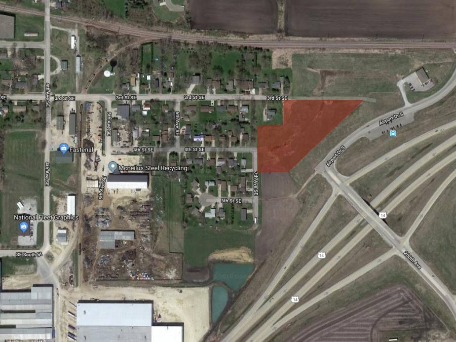 Conveniently Located on the East end of Dodge Center at the NW Corner of the County 25 & Highway 14 Interchange. City Water and Sewer have been Installed Under the Platted Expansion of 3rd Street to Airport Drive South. The Road/Curb/Gutter has not been Installed. The City is Very Motivated to Work with a New Owner to get this Tract Developed and to Complete the 3rd Street Expansion.
