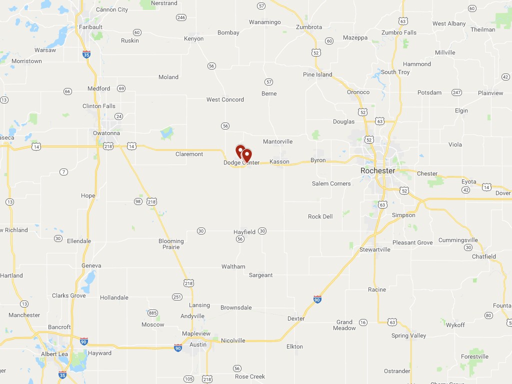Located conveniently between Owatonna and Rochester, Dodge Center is home to many large manufacturing companies and is just minutes to Rochester, the home of Mayo Clinic and Destination Medical Center.