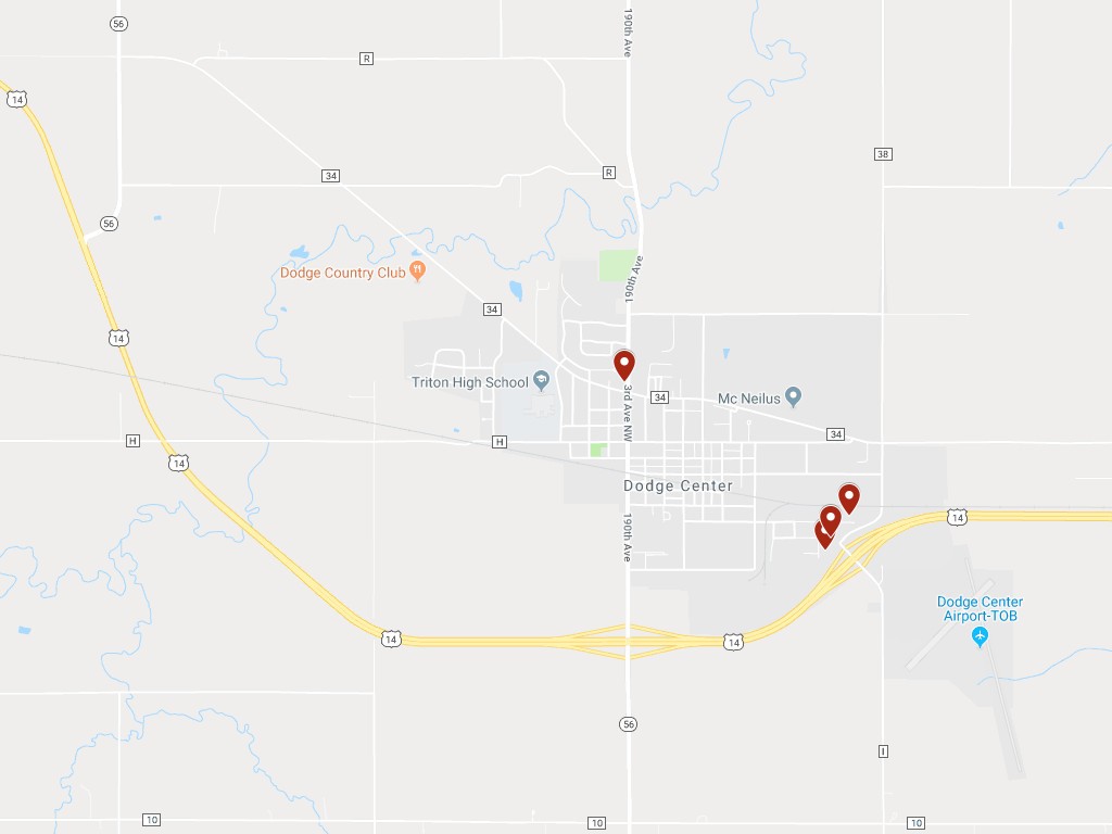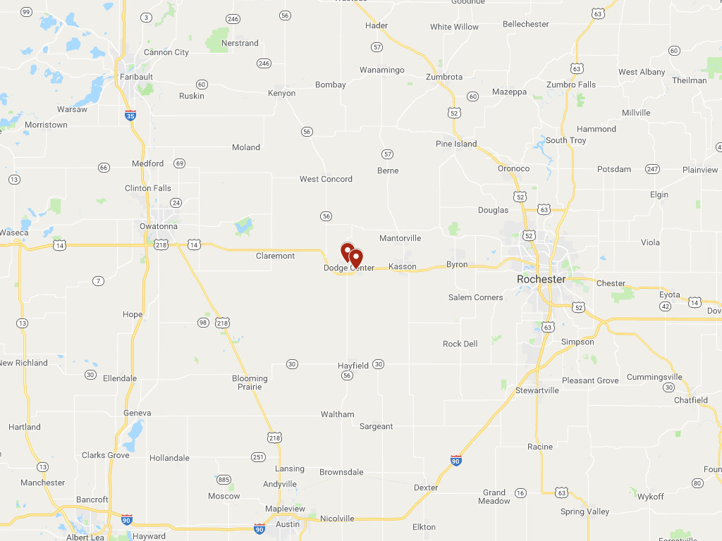 Located conveniently between Owatonna and Rochester, Dodge Center is home to many large manufacturing companies and is just minutes to Rochester the home of Mayo Clinic and Destination Medical Center.